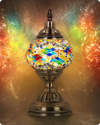 Elevate your space with the exquisite Turkish Moroccan Lamp by Yarra Decor. This stunning lamp features a bronze base and handmade Tiffany mosaic glass, adding a touch of elegance and a unique artistic flair to any room. Designed for both functionality and aesthetic appeal, this portable bedside lamp is perfect for creating a warm and inviting atmosphere in your home.