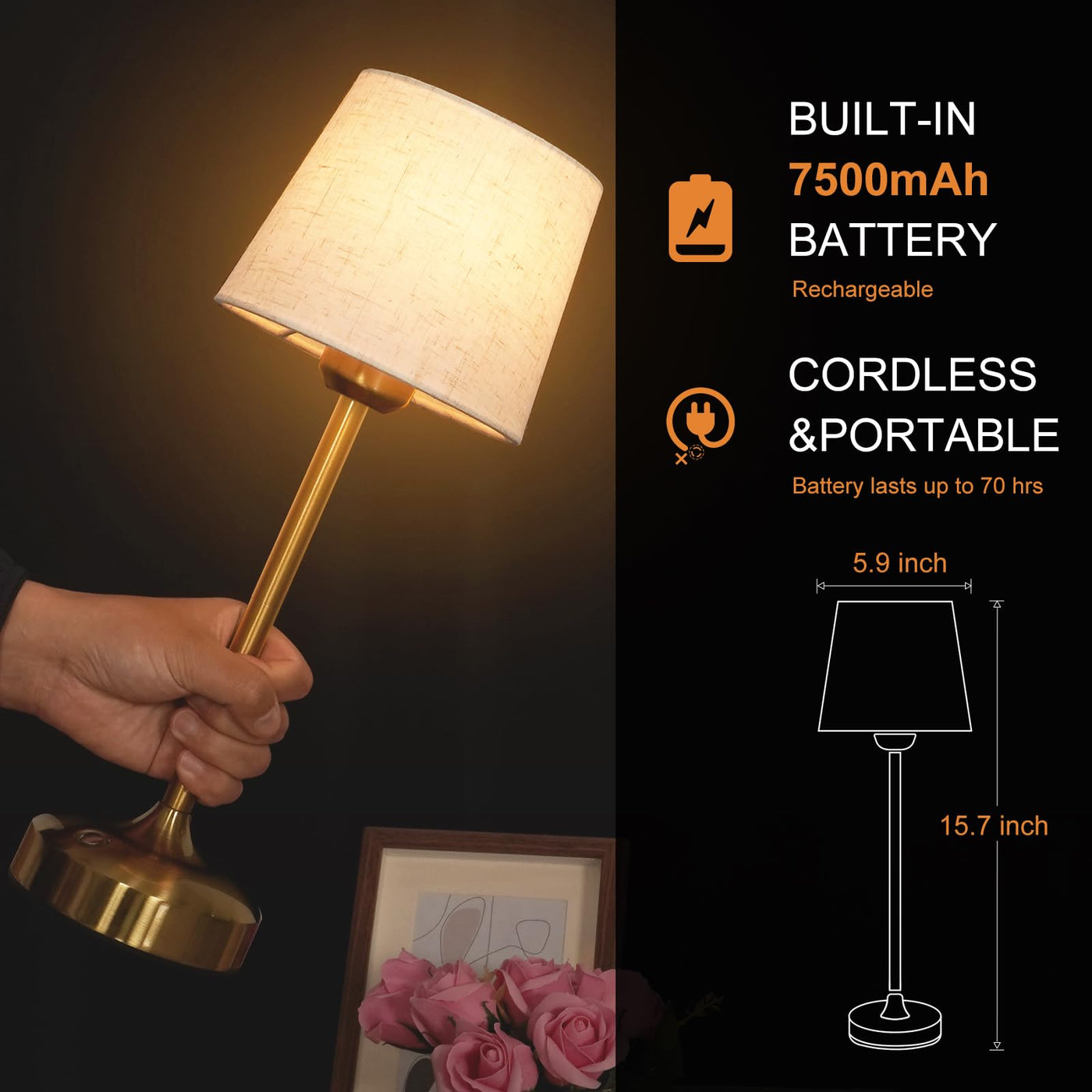 Yayza! Cordless Table Lamp Adjustable Height Desk Lamp, Fabric Shade 7500Mah Rechargeable Led Wireless Touch Night Light Steples