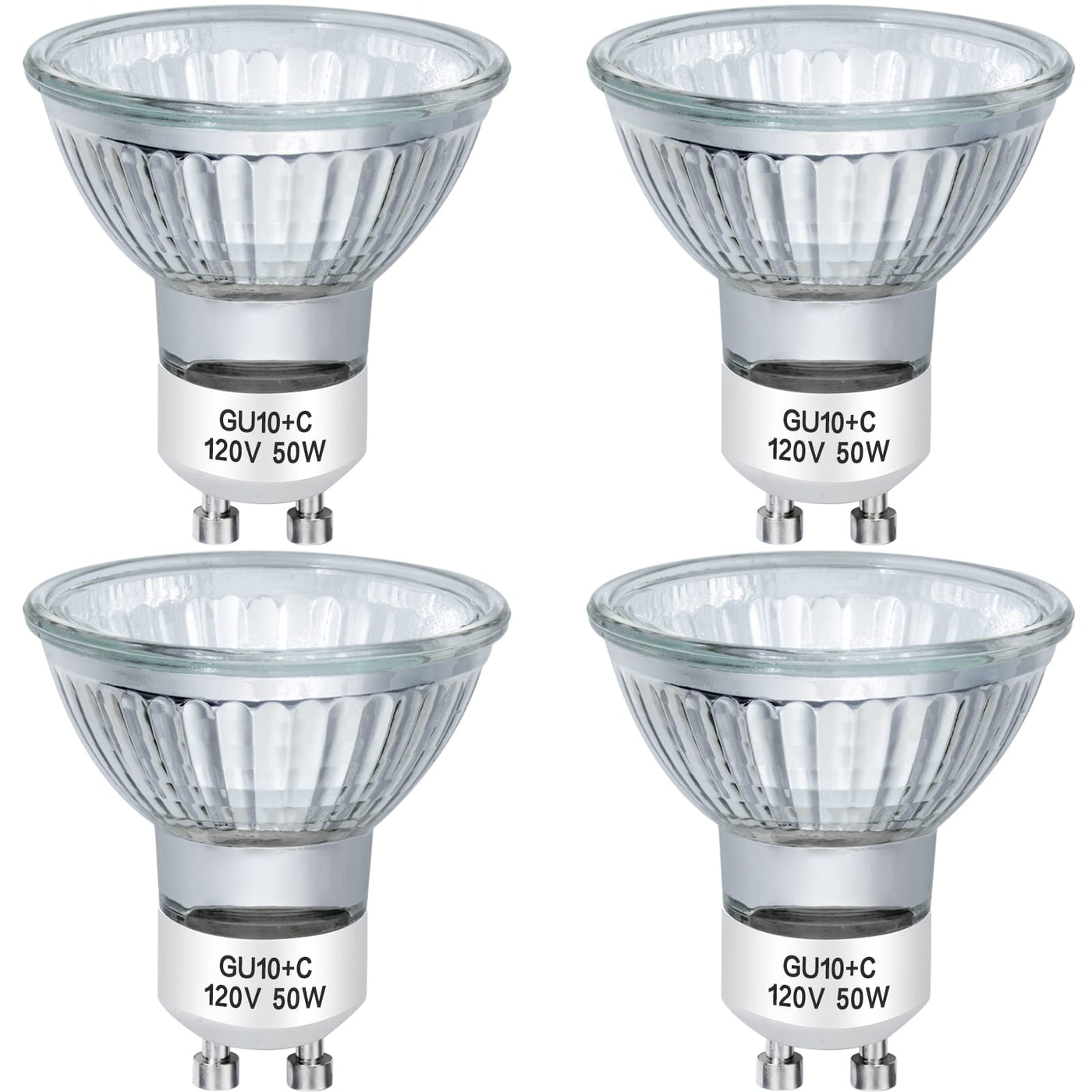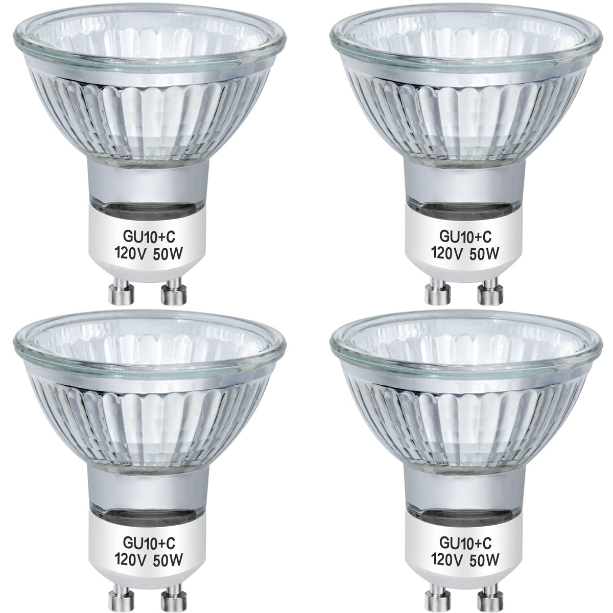 Ybek Gu10 Halogen Bulbs 50W 120V Mr16 For Track,Recessed,Accent Lighting,Ceiling Light,Range Hood, Dimmable Warm White, Pack Of 4