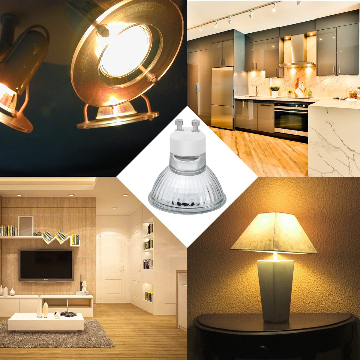 Q: Are the YBEK GU10 Halogen Bulbs dimmable?A: Yes, the YBEK GU10 Halogen Bulbs are dimmable, allowing you to adjust the brightness according to your preference for various lighting applications.