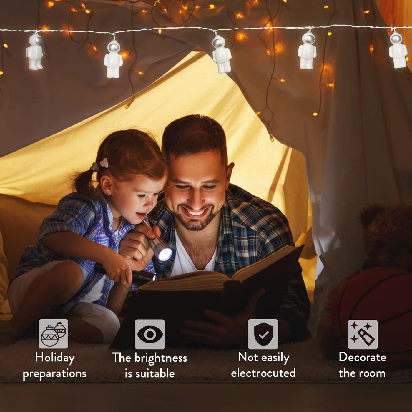 Q: Can the string lights be used for outdoor decorations?A: Absolutely! These versatile Astronaut Pendants String Lights can be used both indoors and outdoors, making them ideal for balconies, gardens, patios, and festive celebrations.