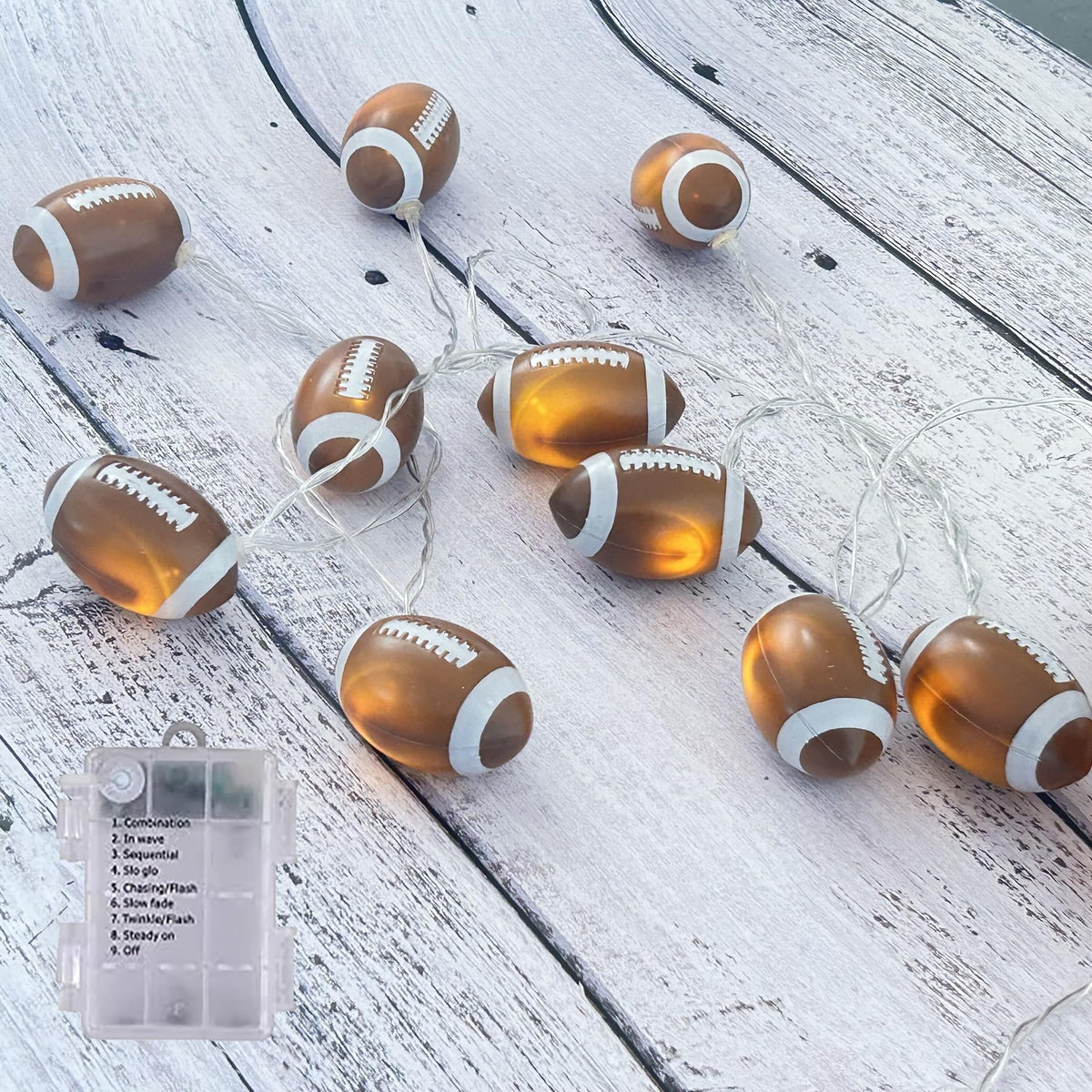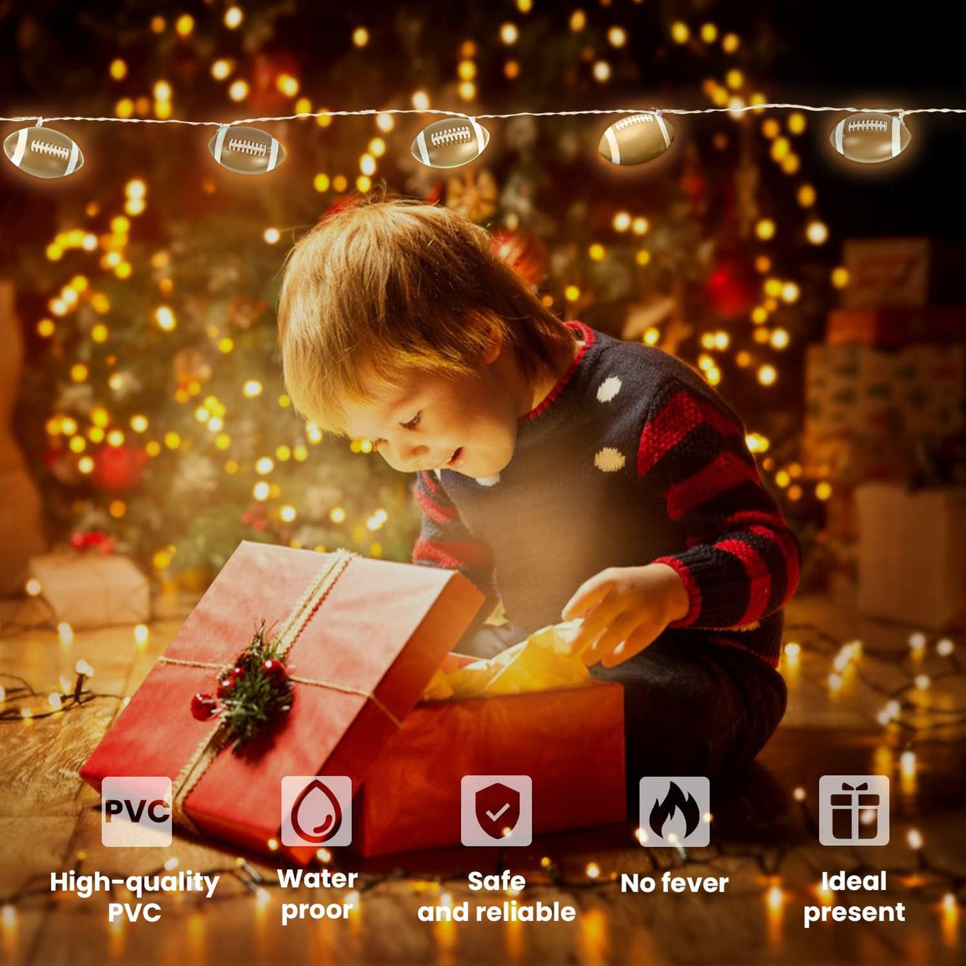 Q: What makes these lights a great gift for football lovers?A: These lights are an ideal gift for football lovers as they not only enhance the decor of a boy's room or football-themed party but also create a cozy atmosphere, making them perfect for celebrating football season.