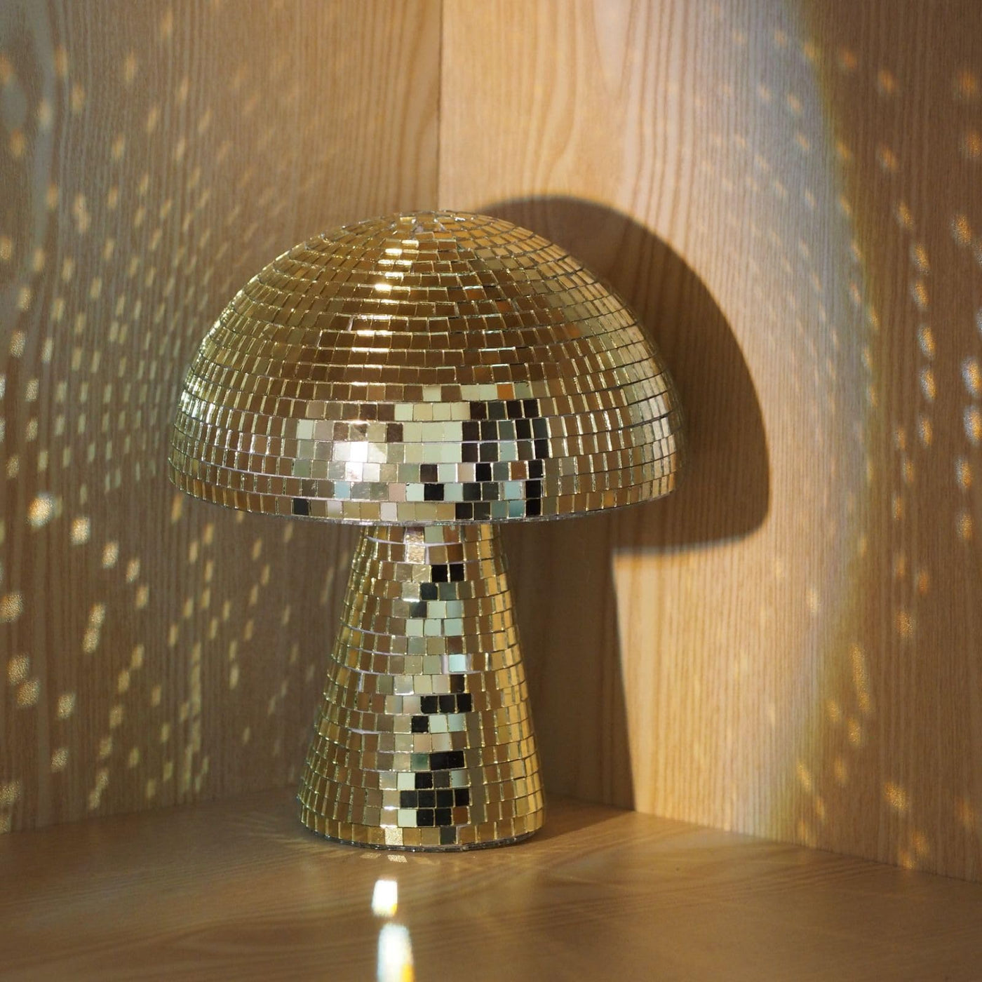 Yeehlmer Creative Mushroom Disco Ball For Party Table Decor Mirror Retro Handmade Disco Ball Mushroom Shape Home Art Decorations Bar Ornaments (Gold M(7))