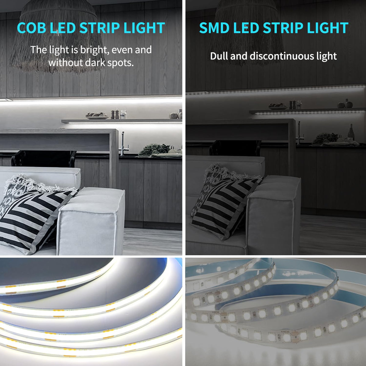 Q: Can the COB LED Strip Light be controlled remotely?A: Yes, the COB LED Strip Light comes with a 13-button infrared remote control and can also be operated via an app, allowing for convenient adjustments to brightness and lighting modes.