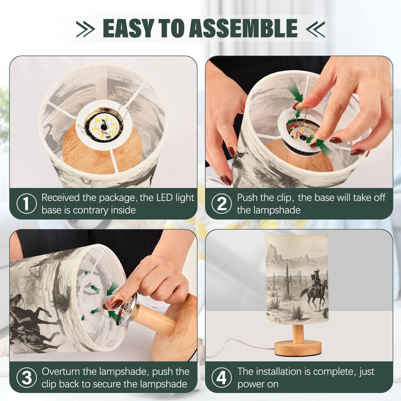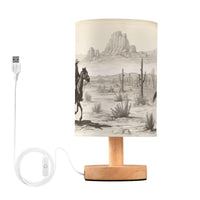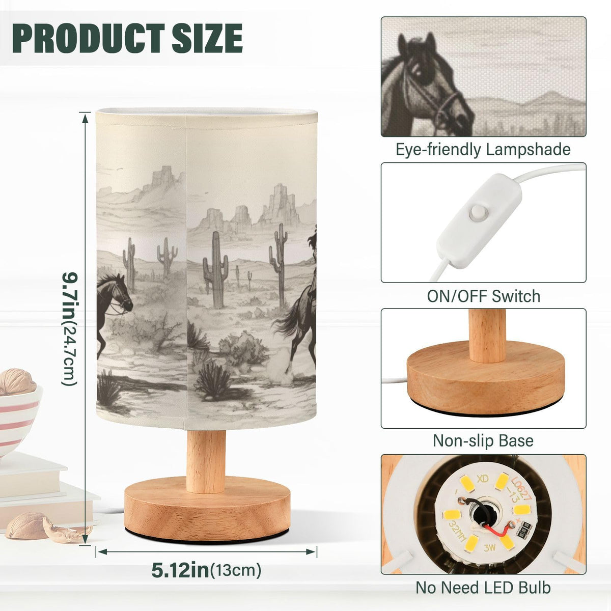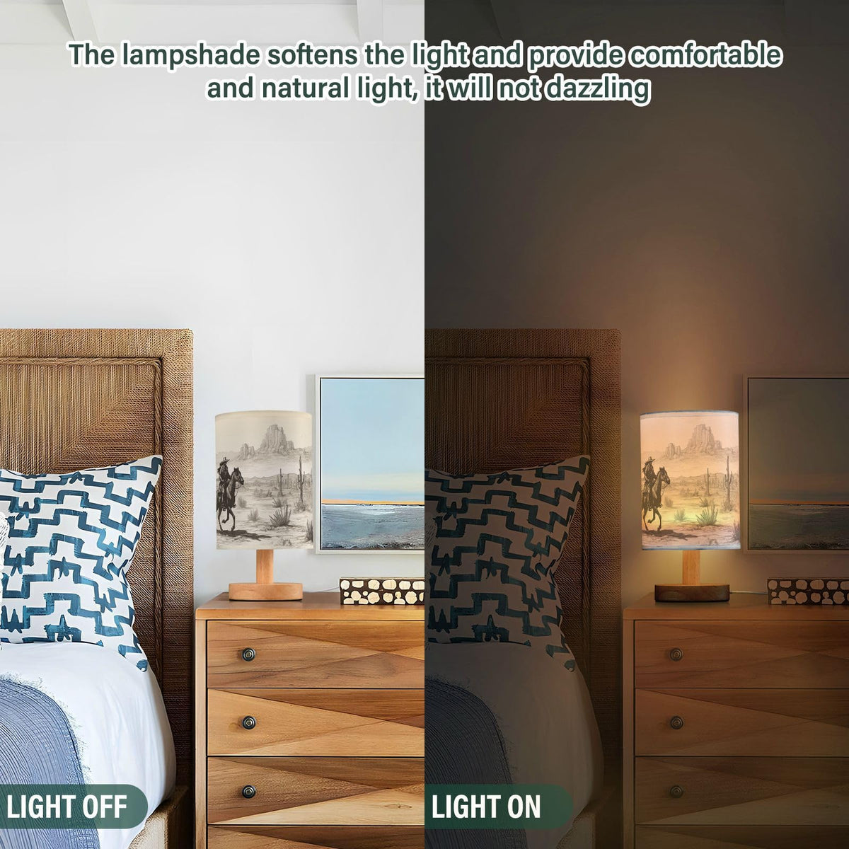 Yegame Western Cowboy Bedside Table Lamp For Bedroom Nightstand, Small Eye Care Led Desk Reading Lamp Usb Port Wood Base Round Flaxen Fabric Shade For For Kids Room Living Room Office Desk