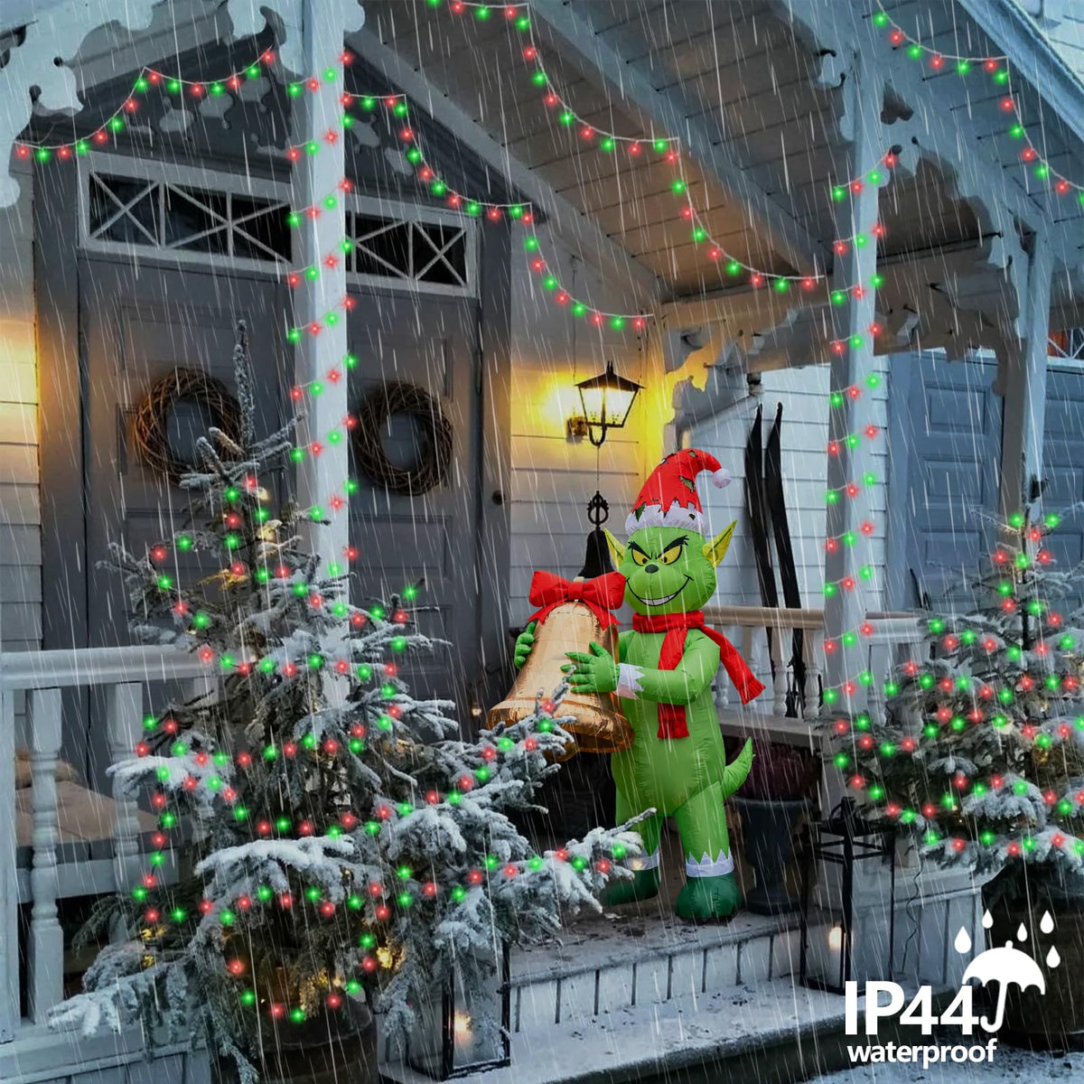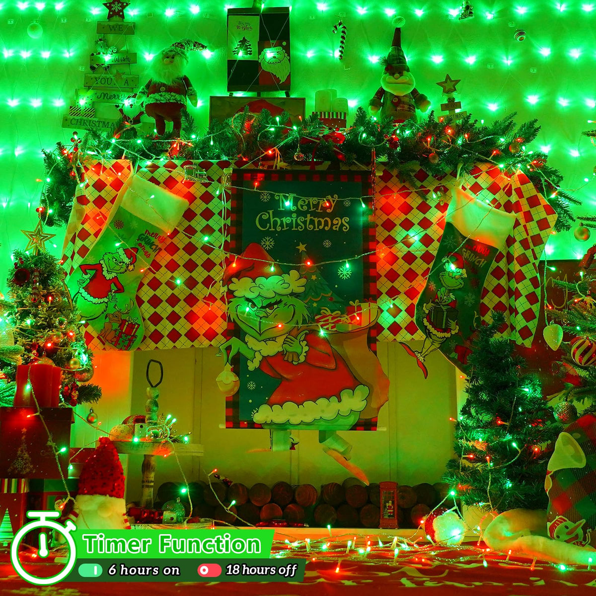 Yeguo 165Ft 500 Led Red And Green Christmas Lights Outdoor Waterproof Clear Wire String Lights Indoor Plug In 8 Modes Clear Wire Twinkle Tree Light For Xmas Party Garden
