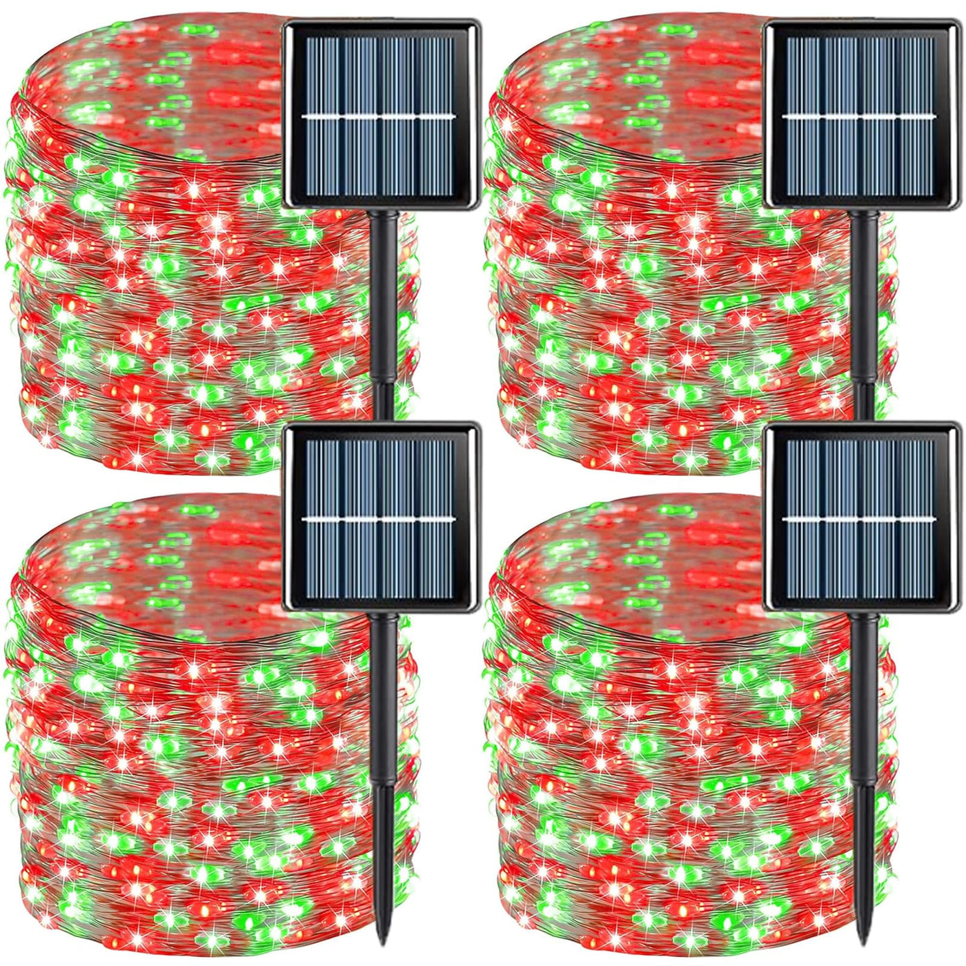 Yeguo Solar Fairy Lights Outdoor Waterproof, 4 Pack Each 33Ft 100 Led String Lights, 8 Modes Silver Wire(Green And Red)