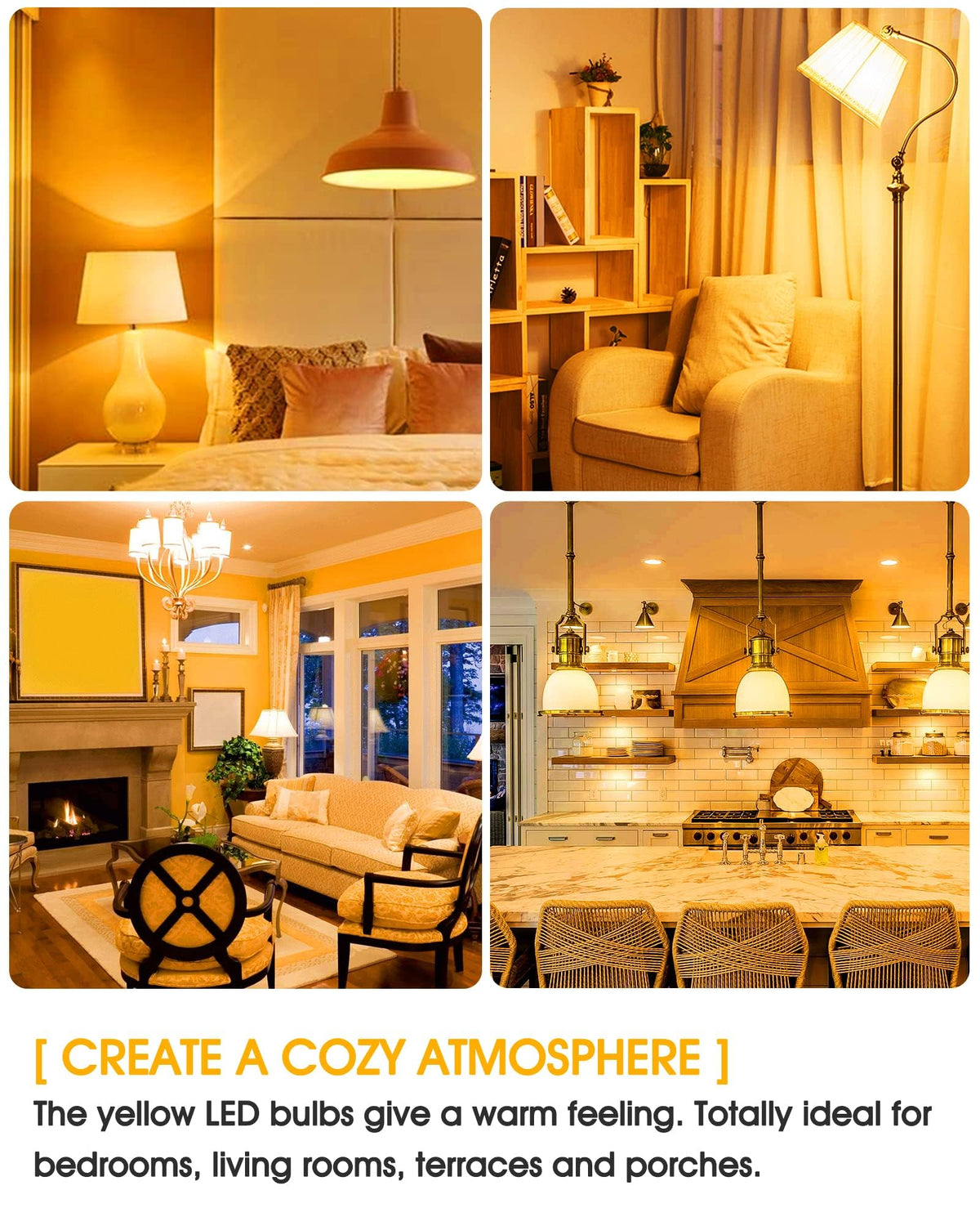 Specifications Light Base: E26 Type of Bulb: LED Yellow Bug Light Bulbs Package Dimensions: 60mm*122mm Luminous Flux: 1200LM Voltage: 100-130V Power: 150W Material: Aviation Aluminum&Plastics Packing lists: 2*A19 LED Light Bulbs Features: Energy Saving: A19 LED light bulbs can last for 25000 hours, high performance light efficiency ensures the equivalent of 150W incandescent light bulb. High Efficiency: 13W A19 LED Bulb is equal to a 150W normal incandescent light, saving up to 80% energy- very low energy consumption. Wide Application: The light flux of 1200LM can be used in the living room, bedroom and dining room to ensure sufficient light in the working and sleeping space, and at the same time to ensure the convenience of access in the corridor. Superior Light Quality: Our bulbs have no flickering light and zero glare, effectively relieving eye strain, protecting eyesight, and providing a comfortable, cosy atmosphere for the family.