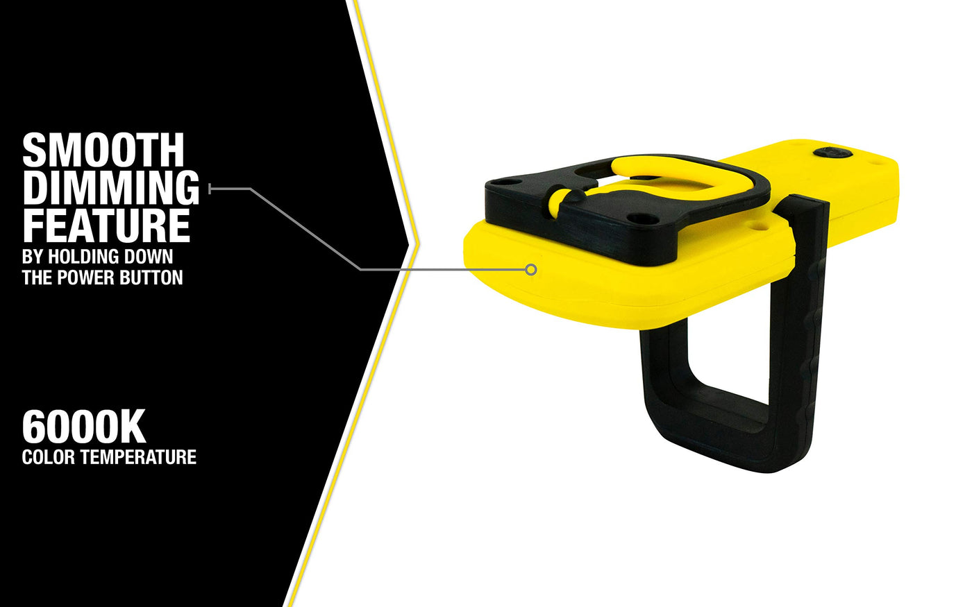 Q: Does the light have any mounting options?A: Yes, the Yellow Jacket task light features a magnetic base for easy stabilization on metal surfaces and a built-in hanging hook for convenient use on-the-go.