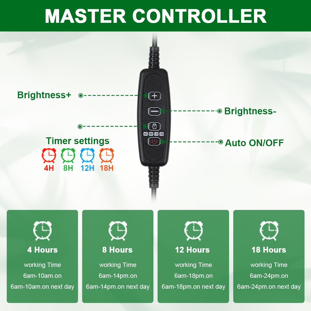 Q: How does the auto timer function work on this grow light?A: The grow light includes an auto on/off timer with settings for 4, 8, 12, or 18 hours, allowing you to customize the lighting schedule for your plants to ensure they receive the right amount of light.
