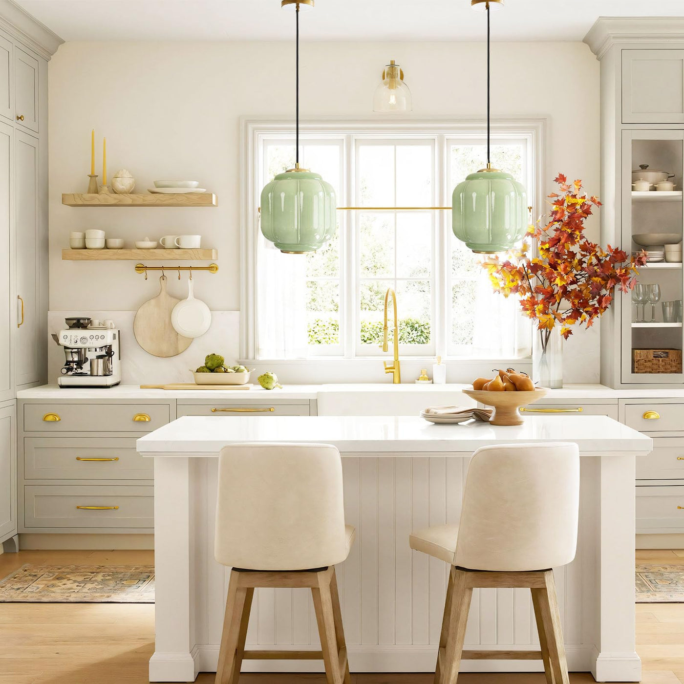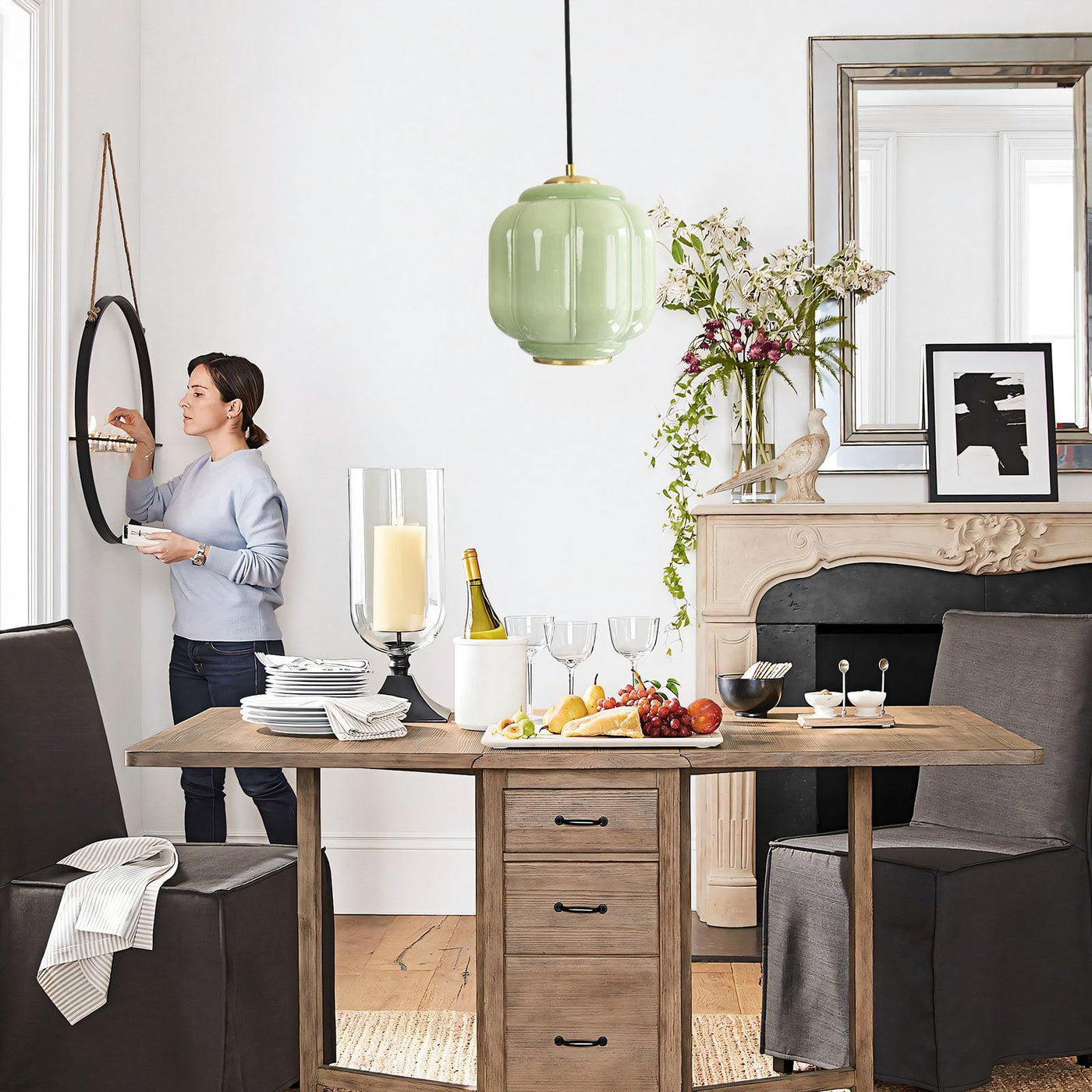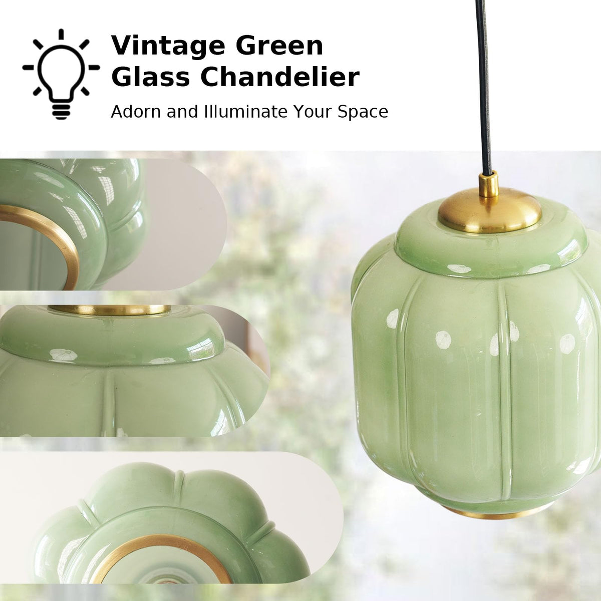 Key Features & Benefits Multi-Size Chandelier Options Perfect For Large Pendant Lights In Dining Rooms Or As Small Glass Pendant Lights In Cozy Bedrooms. Ideal For Kitchen Island Pendant Lighting Entryways Or Hallways Adapting Seamlessly To Spaces Of Different Sizes. Adjustable & Dimmable Functionality Customize Hanging Height With An Adjustable Chain/Rod To Suit Various Ceiling Heights. Pair With A Dimmable Pendant Light To Create The Perfect Ambiance. Versatile Styling Blends With Modern Farmhouse Pendant Lights Mid-Century Modern Fixtures Or Brass Pendant Lights For A Timeless Industrial Look. Enhances Kitchen Lights Over Sink Areas Or Acts As A Dining Room Light Fixture Centerpiece. enhanced Materials Hand-Blown Glass Shades With A Distinctive Vintage Green Hue Paired With Durable Brass Or Black And Gold Finishes. Supports Wood Pendant Lights Kitchen Island Aesthetics Or White And Gold Pendant Lights For Contrast.