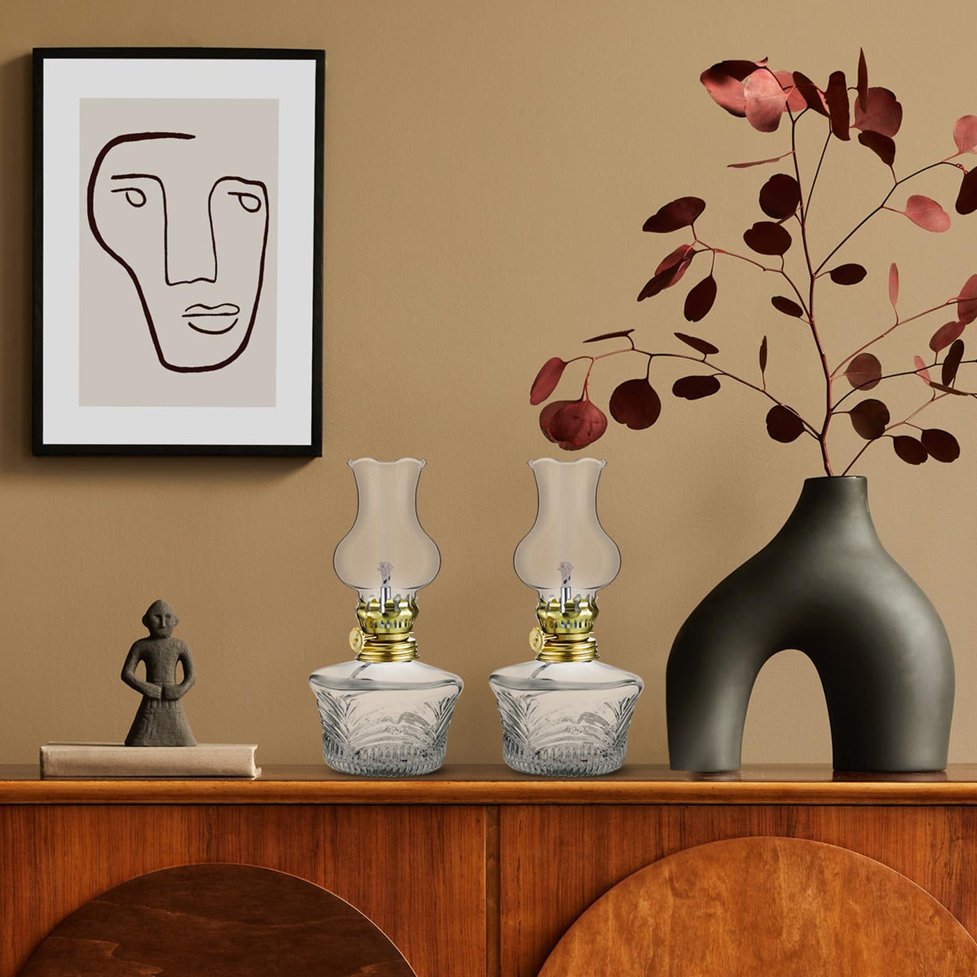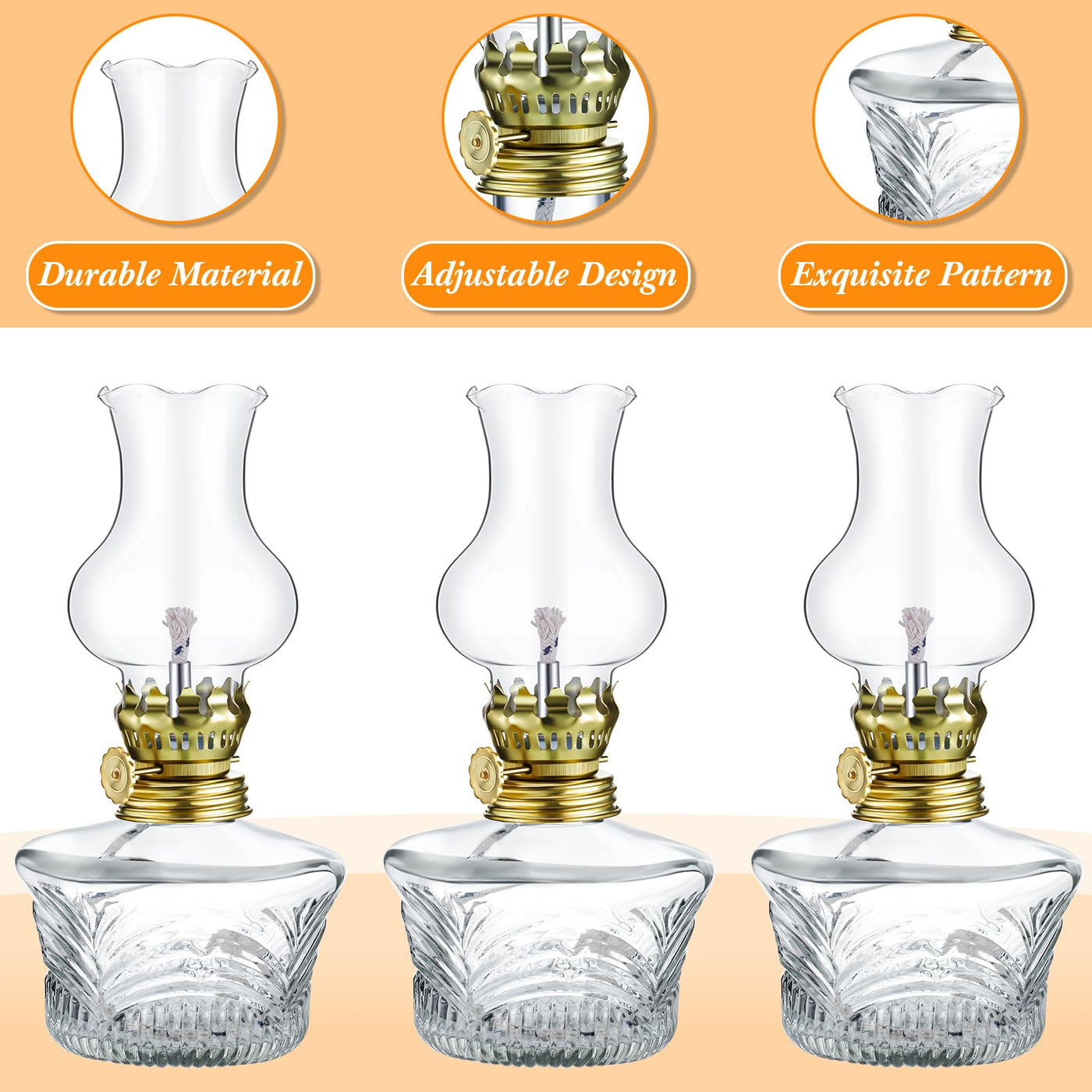 Features: Practical tools: The chamber oil lamp is practical and exquisite, which can be applied to home decoration, candlelight dinners, outdoor camping, temple and church prayers and other occasions, practical tools for you in daily life. Exquisite gift: Just share these rustic oil lamps with your friends or family, the exquisite gift is sure to win their preference, showing your love and care for them, bringing them a comfortable using experience. Specifications: Material: glass and metalMain color: clear and goldHeight of the rustic oil lamps: measures about 7.09 inches/ 18 cmWick length: 6.6 ft/ 2 m (0.16 inches round)Package includes: 12 x Vintage glass kerosene lampNotes: Manual measurement, please allow slight errors on size. The color may exist a slight difference due to different screen displays. Pointed products, please keep them away from small kids. Winding risk, please keep away from children.