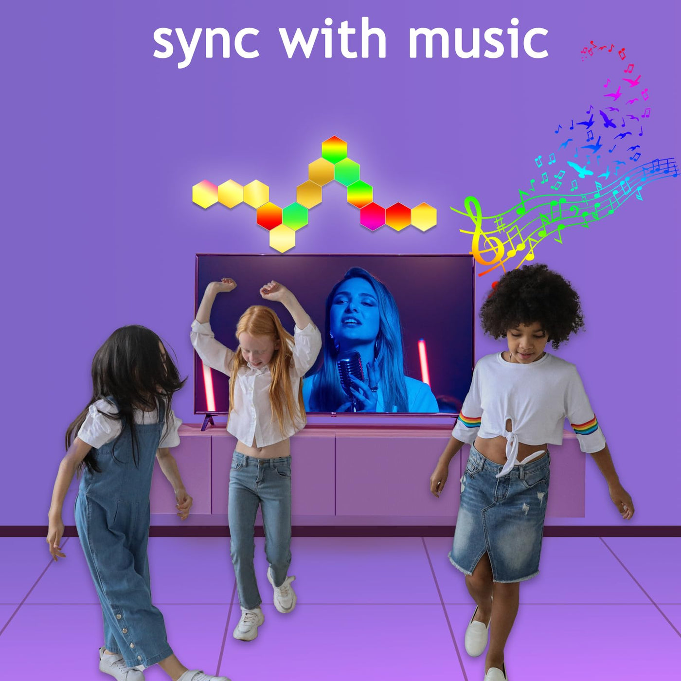 Q: Can the hexagon lights sync with music?A: Yes, the YEYIZU hexagon lights feature a music sync mode that allows the lights to change colors and patterns in rhythm with your favorite songs. This feature is perfect for creating an ambient atmosphere for parties or movie nights.