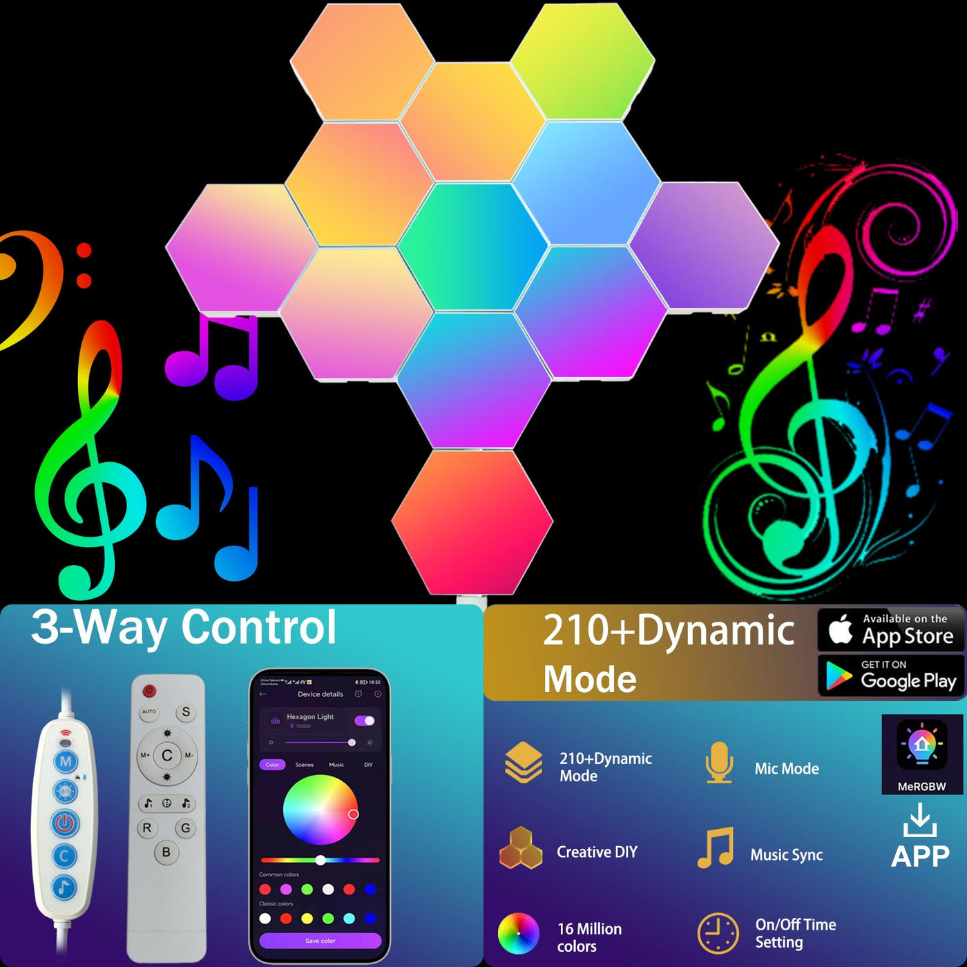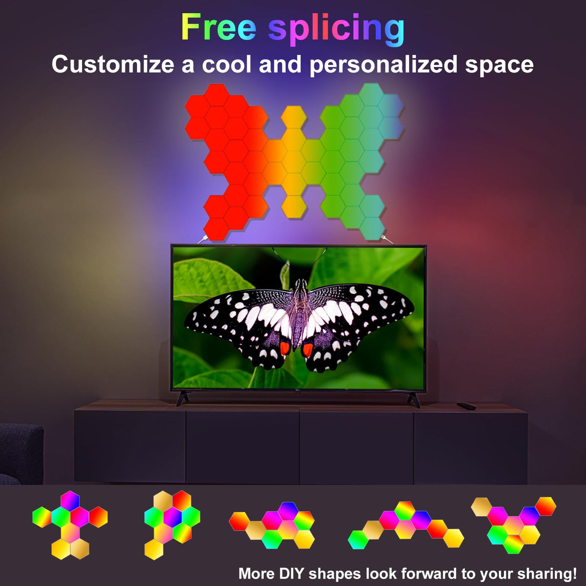 'Experience The Stunning Beauty Of Hexagon Lights - The Ultimate Lighting Solution For Any Modern Home. With The Hexagon Led Lights, You Have The Power To Transform Your Living Space Into A Mesmerizing And Colorful Wonderland. ??Led Hexagon Lights Specifications: Number Of Light Panels: 8, 12, 20(Optional) Size: 3.3 * 3 * 1.2 Inches Material: Plastic Lighting Color: Rgb, 16 Million Colors Lighting Modes: More Than 200 Power Supply: Usb Control Options: App, Remote Controls ??Convenient Controls & Dazzling Light Patterns With The Hex Lights' Remote Control Or Easy-To-Use App, You Can Conveniently Turn On/Off The Lights, Adjust Brightness, And Select From Over 16 Million Vivid Colors And 200+ Unique Lighting Modes. ??Sound Activated Hexagon Lights Take Your Lighting Game To The Next Level With The Built-In Music Follow Mode Of Led Wall Panels. With This Feature, The Led Hexagon Lights For Wall Sync To The Beat Of Your Favorite Tunes, Pumping Up The Vibe And Adding A Unique Touch To Your Movie Night, Gaming Session, Or Karaoke Party. ??Diy-Able Appearance The Modular Design Of The Hexagon Light Panels Allows Them To Be Arranged In Any Way You Desire To Create Different Shapes, Patterns, And Effects. Hexagon Lights Are Perfect For A Range Of Interior Spaces, Such As The Living Room, Bedroom, Game Room, Or Even On The Tv Wall. ??Cool Room Decor Whether You Want To Turn Your Living Room Into A Cozy Haven, Create An Epic Gaming Environment, Or Set Up A Bedroom Fit For A King Or Queen, The Hexagon Led Lights Can Make It Happen. Led Hexagon Lights Are The Epitome Of Cool And Futuristic Room D Cor, Which Is Sure To Dazzle Anyone Who Enters Your Home. ??Satisfaction Guarantee We Are Confident In The Quality Of These Led Hexagon Lights For Wall And Are Willing To Help You With Any Questions You May Have About Them.''