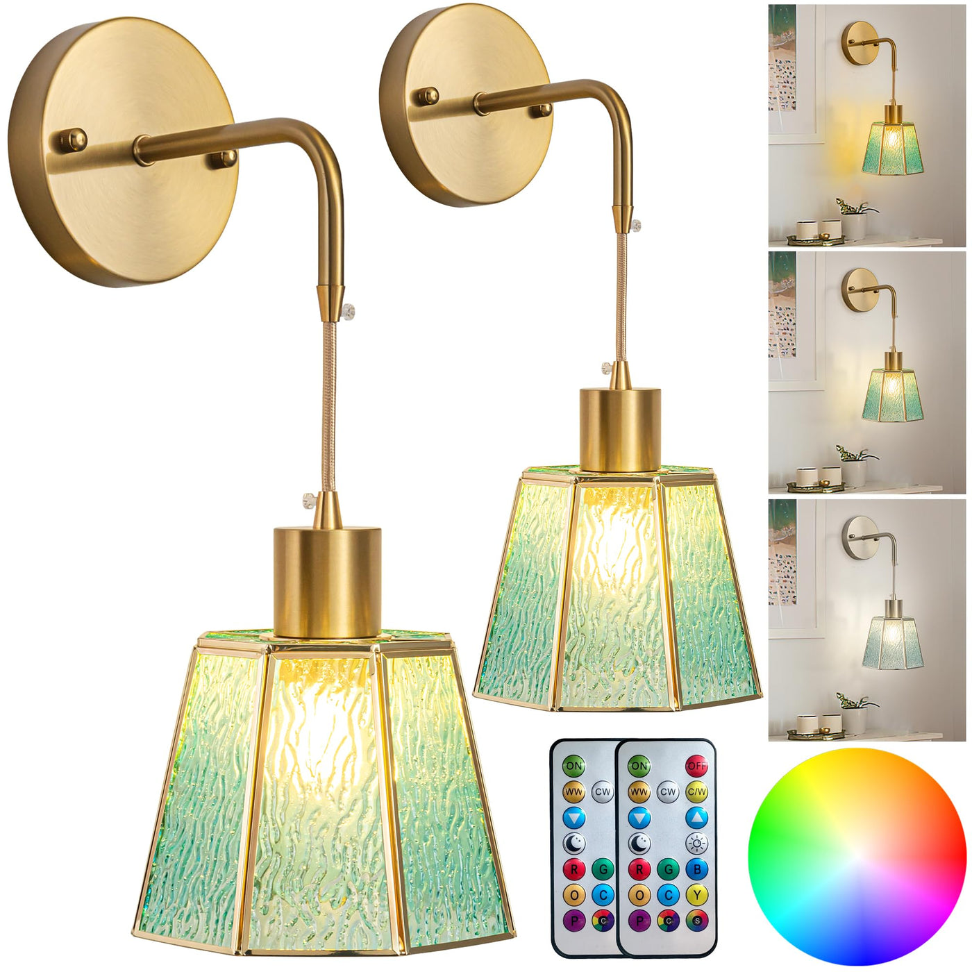 Yhcdlamp Battery Operated Sconces Set Of 2, Battery Operated Wall Lights With Remote,Rechargeable Wall Sconces Rgb Color Changin