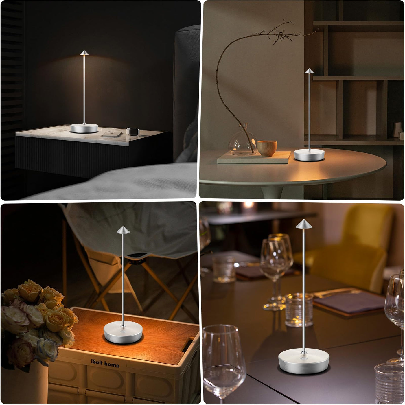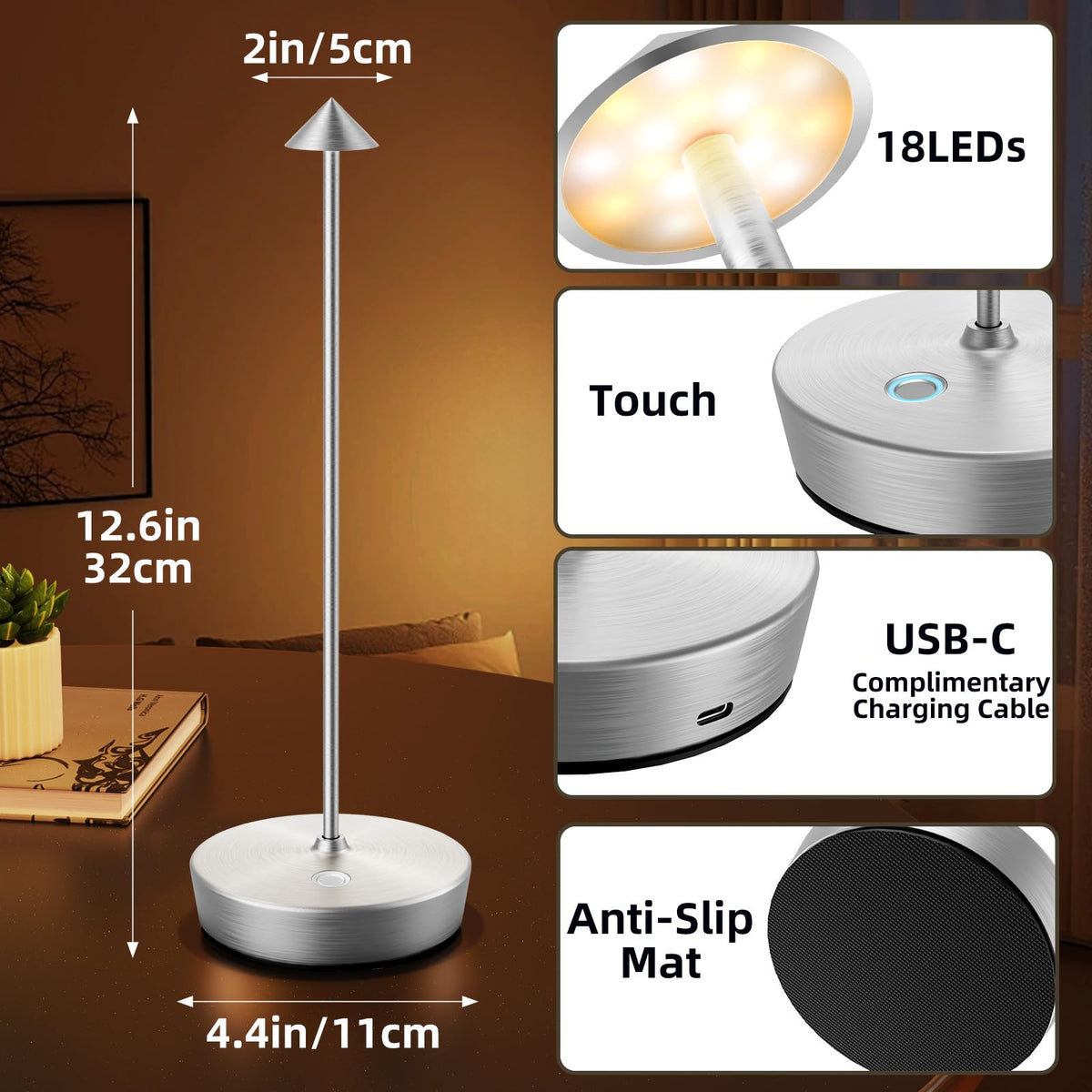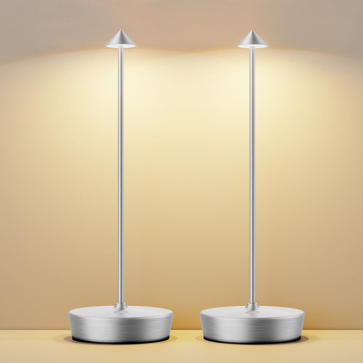 Yht Cordless Rechargeable Table Lamp, 6000Mah Outdoor Waterproof Battery Operated Table Light Led Touch Dimmable Desk Lamps For Patio Dining Restaurant Home Living Room Set Of 2 Silver