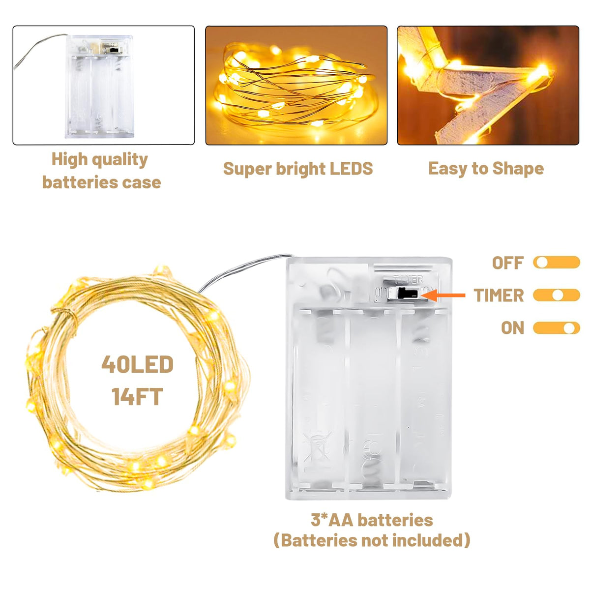 Yiaht 12 Pack Led Fairy Lights Battery Operated String Lights With Timer Waterproof Silver Wire 14 Feet 40 Led Twinkle Mason Jar Lights For Wedding Party Bedroom Patio Christmas Warm White