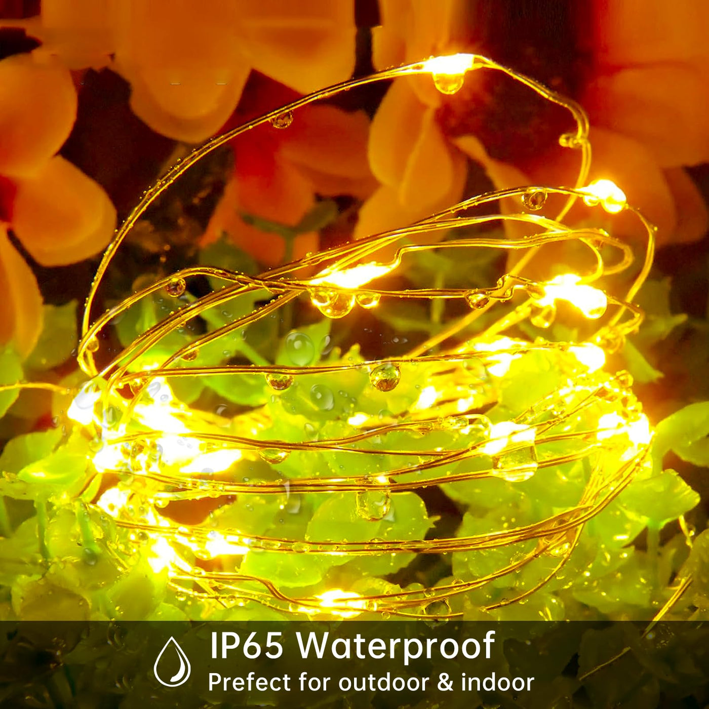 Q: Are the Yiaht fairy lights safe for outdoor use?A: Yes, these LED fairy lights are IP65 waterproof, making them suitable for both indoor and outdoor use. However, please note that only the string lights are waterproof, while the battery pack should be kept dry.