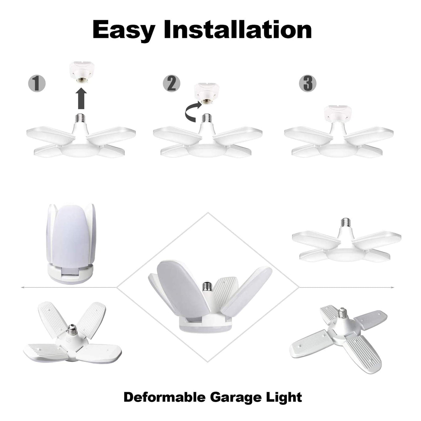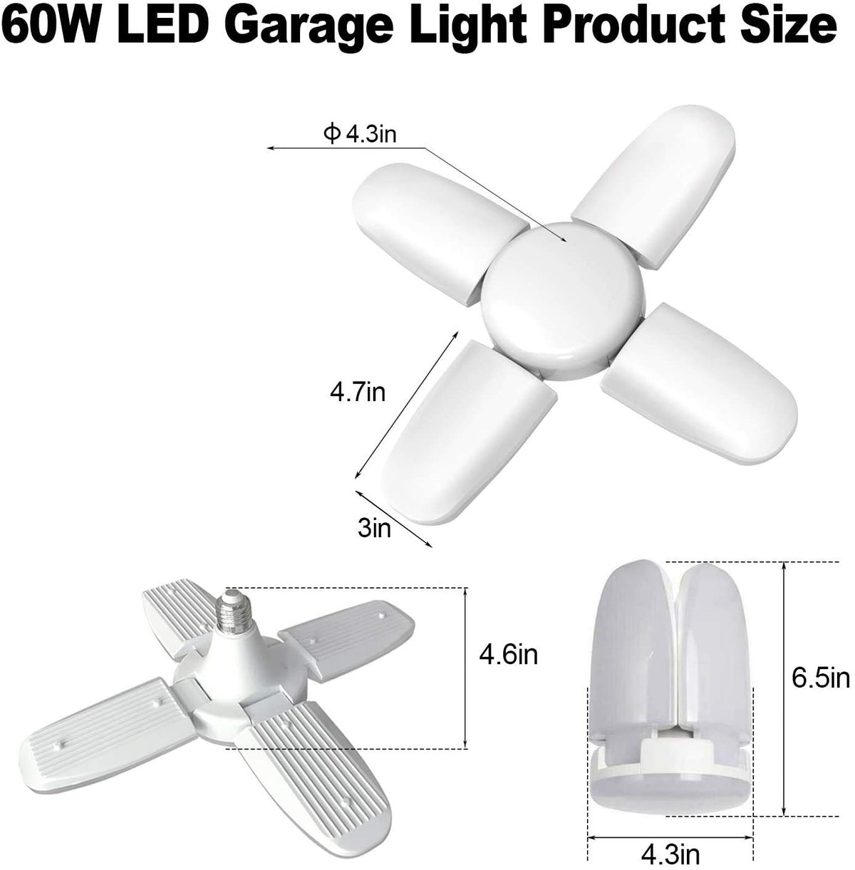 - **High Brightness and Full Coverage**: Equipped with 4 adjustable LED heads and 1 center light head, this LED Garage Light offers 6000 lumens of brightness at a color temperature of 6500K. Say goodbye to dark corners and enjoy full coverage in any workspace.