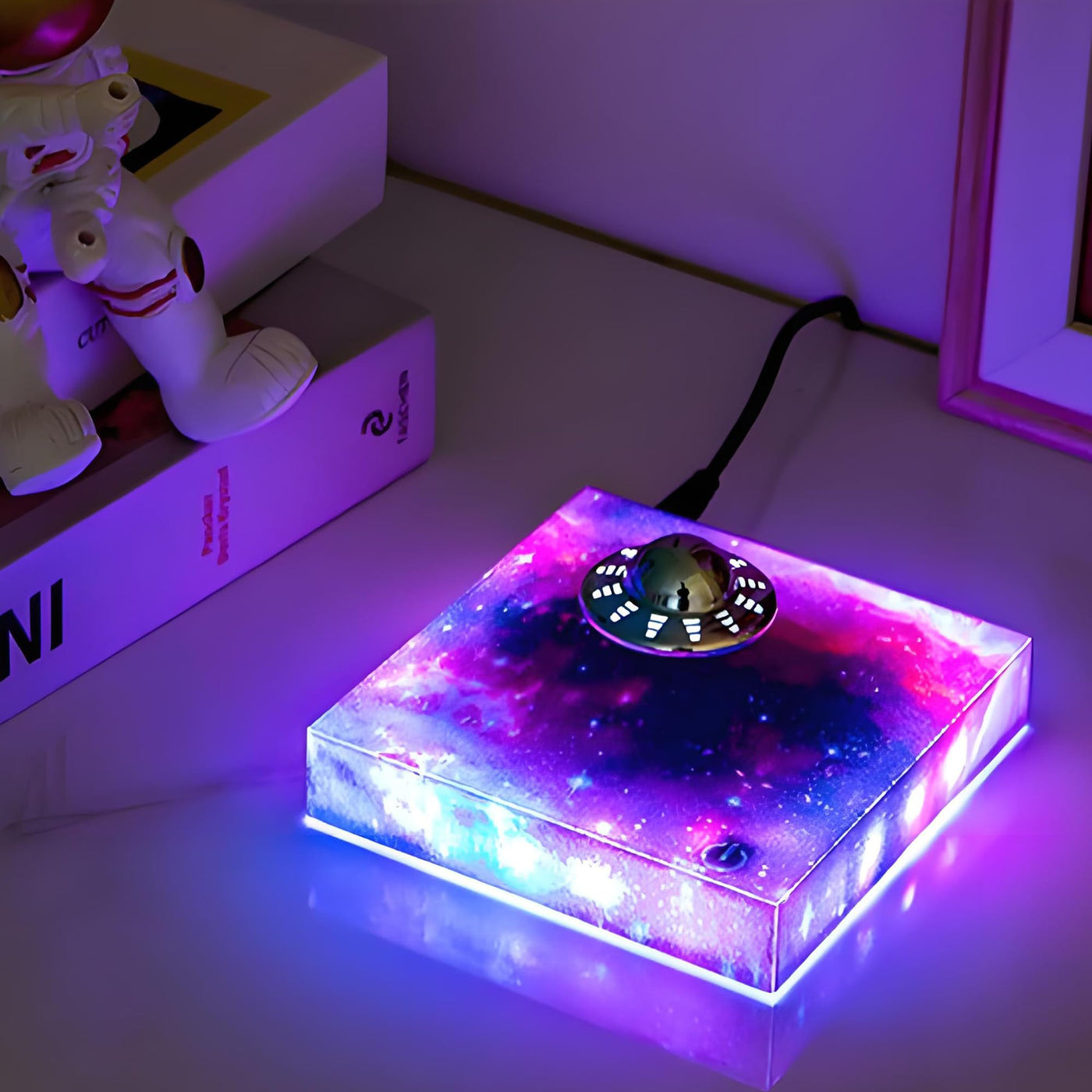 Transform any space into a sci-fi wonderland with this Magnetic Levitation UFO! Combining cutting-edge maglev tech and enchanting RGB lighting, this floating disk defies gravity while projecting a cosmic starscape. The UFO hovers effortlessly above its base, emitting vibrant color cycles that sync with your mood or music. Meanwhile, the base casts a rotating starry sky pattern, turning rooms into celestial retreats-ideal for relaxation, parties, or bedtime stories. Crafted for simplicity, it powers via electric and includes adjustable settings for lights. Durable and whisper- quiet, its a stellar gift for tech enthusiasts, kids, or anyone craving a touch of interstellar magic. Whether as a desk ornament, night light, or conversation starter, this UFO delivers awe-inspiring visuals day or night.