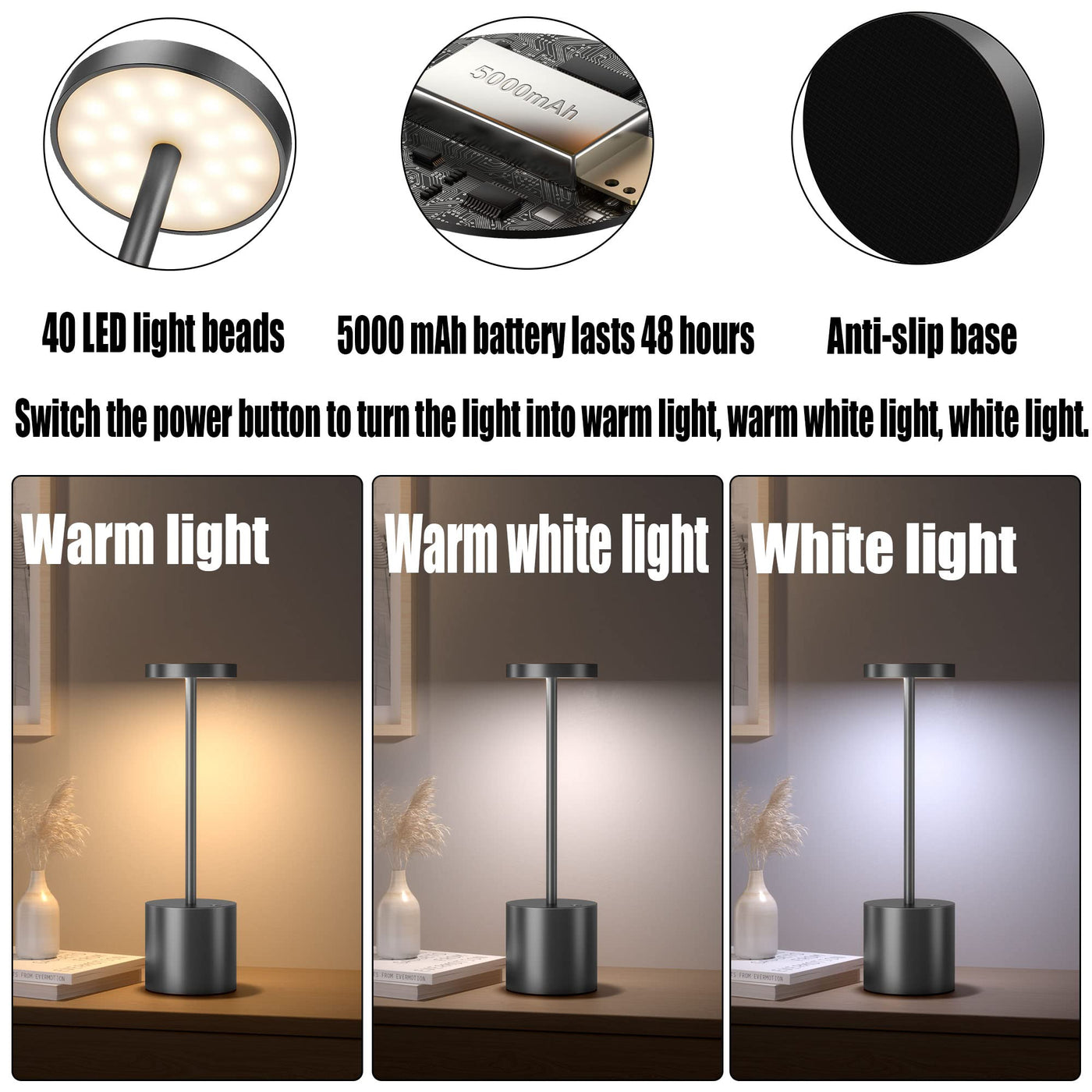 Q: What is the battery life of the YIBEN cordless table lamp?A: The YIBEN cordless table lamp features a built-in 5000mAh lithium battery that provides up to 15-20 hours of continuous use on a full charge, making it ideal for both indoor and outdoor settings.
