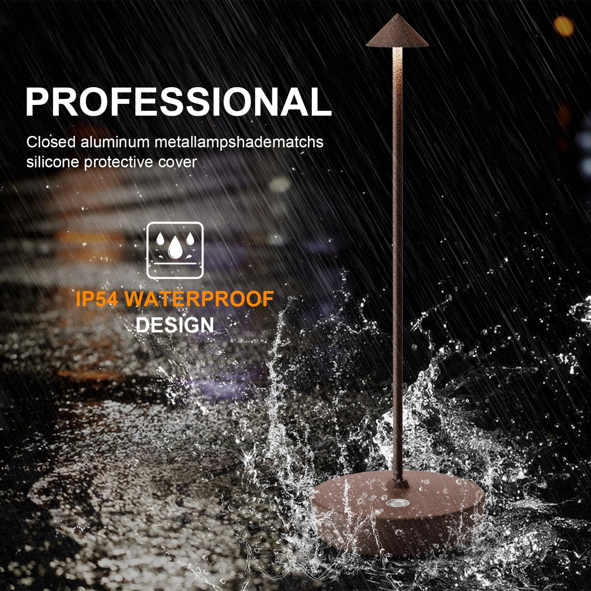 Q: Is the YIBEN Cordless Table Lamp suitable for outdoor use?A: Yes, the YIBEN Cordless Table Lamp has an IP54 waterproof rating, making it resistant to spills and splashes, which is ideal for both indoor and outdoor settings such as restaurants and patios.
