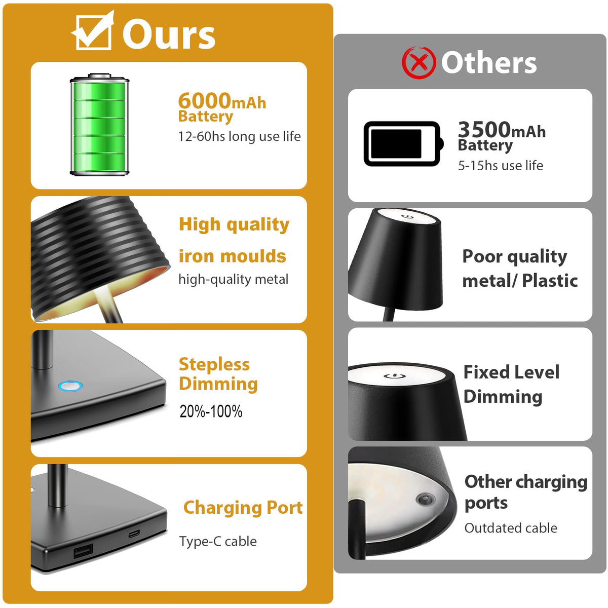 Yiben Cordless Table Lamps Rechargeable,Battery 6000Mah Led Portable Lights For Outdoor/Patio/Restaurant/Indoor Desk Lamp - Ip54
