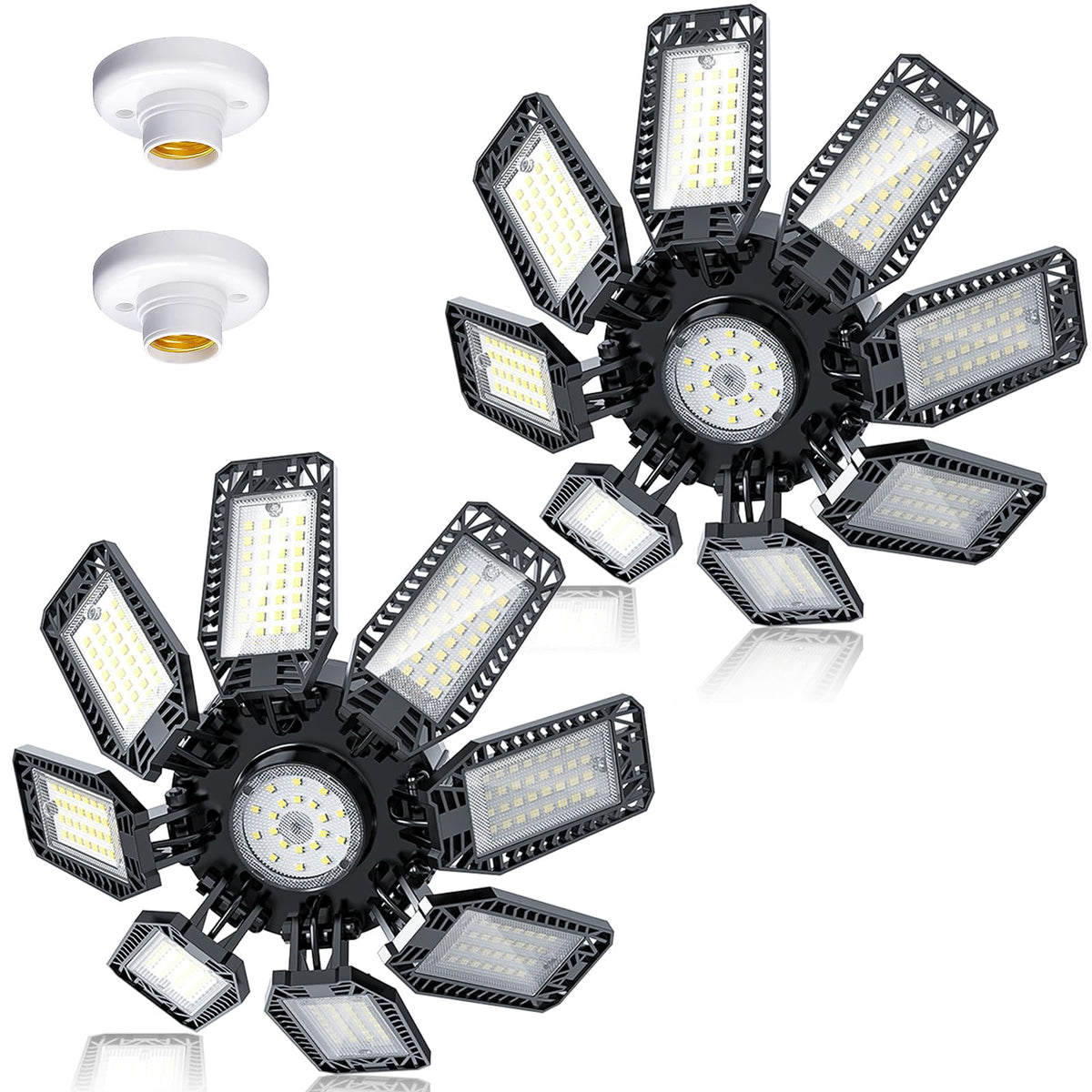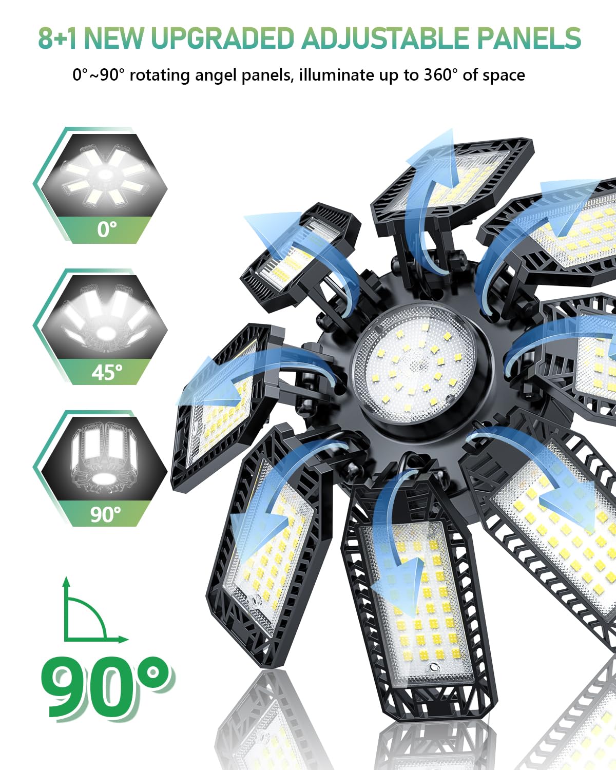 Q: Can I adjust the angle of the light panels?A: Absolutely! This garage light comes with 8 adjustable panels that can be tilted from 0° to 90°, providing customizable lighting coverage and eliminating dark spots in your workspace.