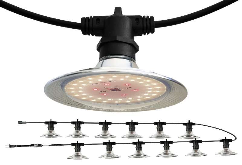 Yidasyn Outdoor Grow Light String For Greenhouse Plants, Waterproof, 44Ft(12 Lights) 110V Plug, Daisy Chain,Full Spectrum Waterproof Grow Lights For Seedling,Veg,Flower Of Garden Backyard Farm