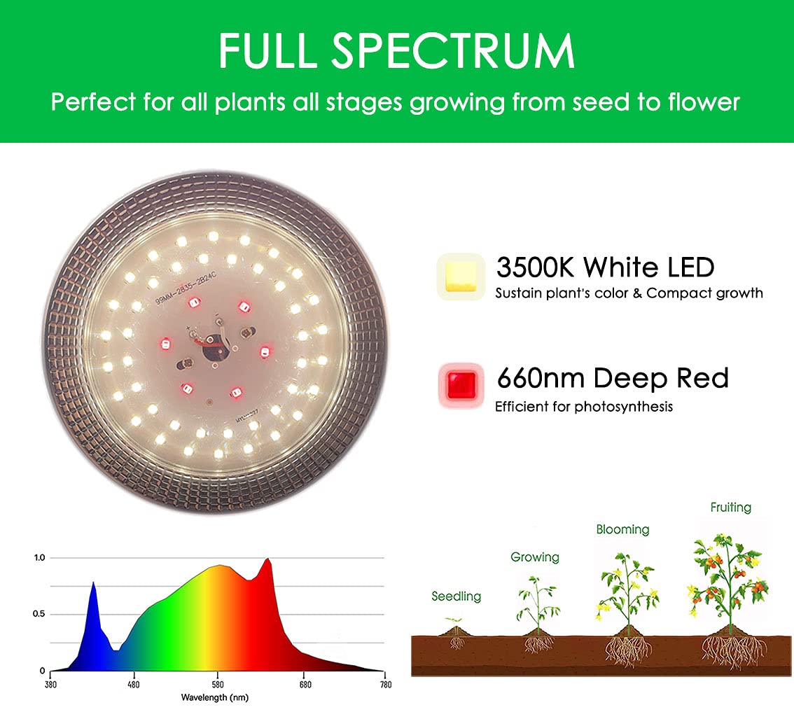 Our Plant Grow Light String is a full spectrum led grow light - It emits all the wavelengths from 400nm to 700nm and enhance with 660nm deep red - just like natural sunlight. It has proven effective at promoting indoor&outdoor growth as it accelerates photosynthesis.