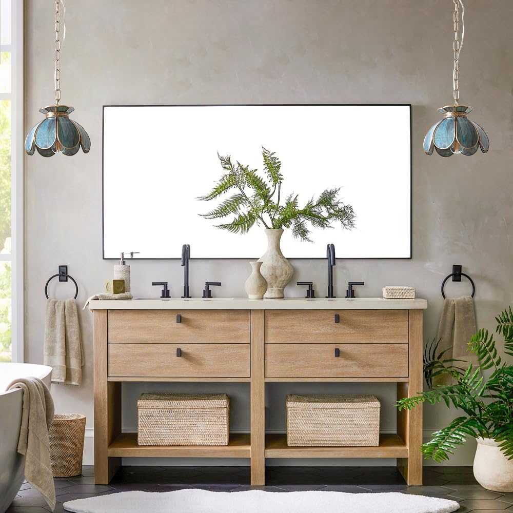 Q: What design styles does the Yifi Mini Lotus Pendant Light complement?A: The Yifi Mini Lotus Pendant Light is inspired by oriental culture and features a vintage brass finish with a lotus-shaped glass shade in mixed blue and green. It complements a variety of design styles, including oriental, vintage, antique, and elegant decor, making it an excellent choice for kitchens, dining rooms, and living spaces.