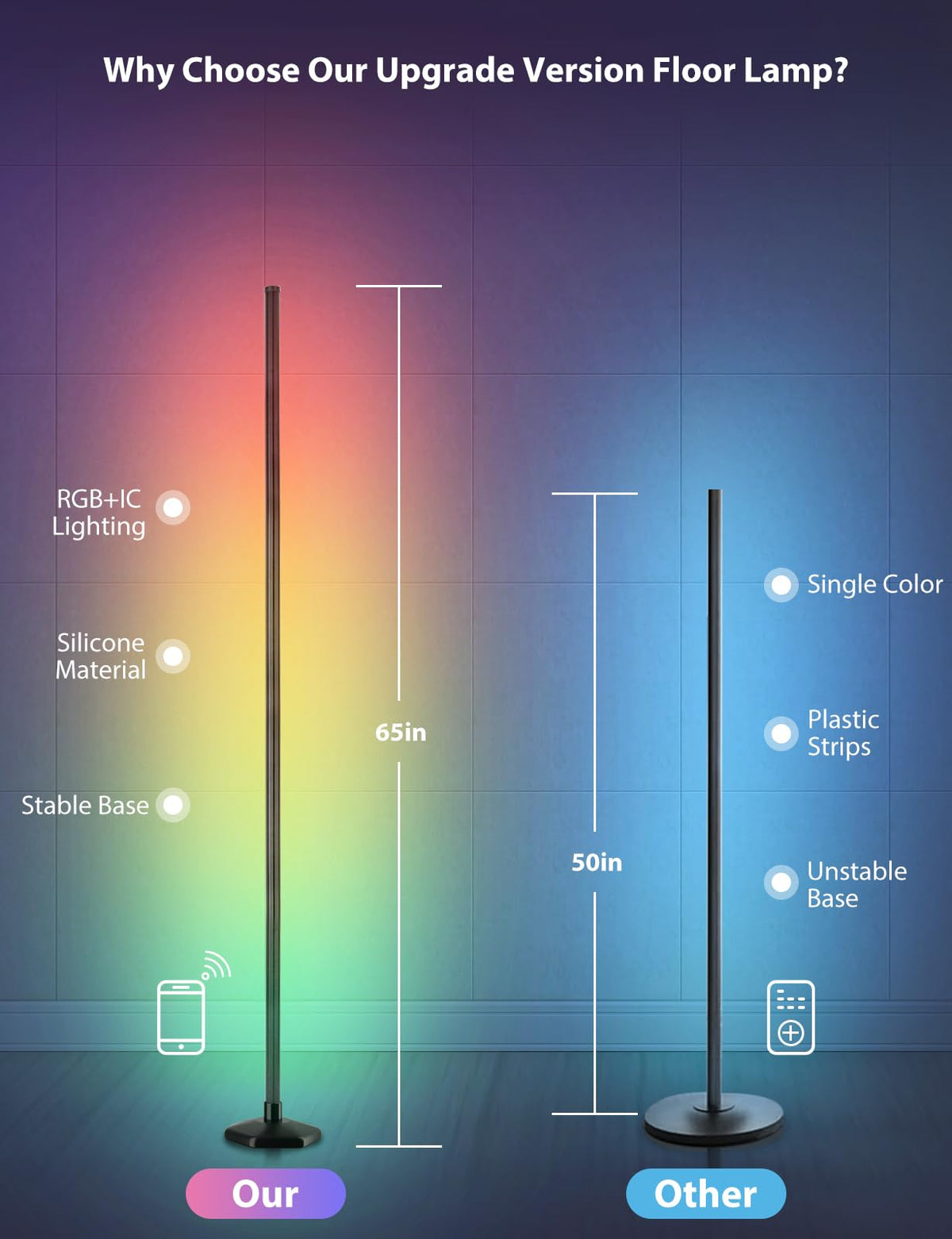 Yikbik 2Pcs Rgb Floor Lamp, Bluetooth App And Remote Control 65'' Smart Modern Standing Lamp Music Sync 16 Million Diy Colors Ch