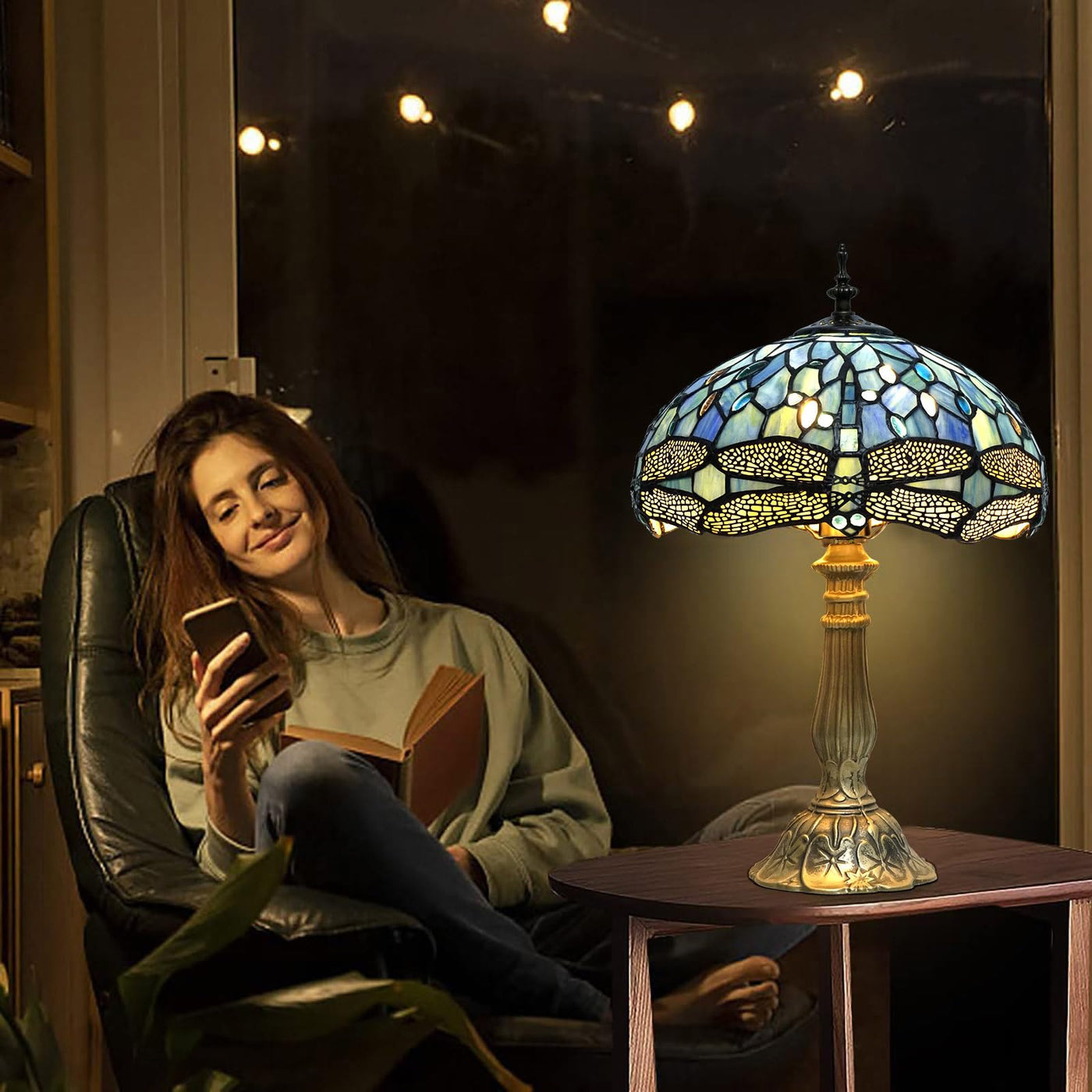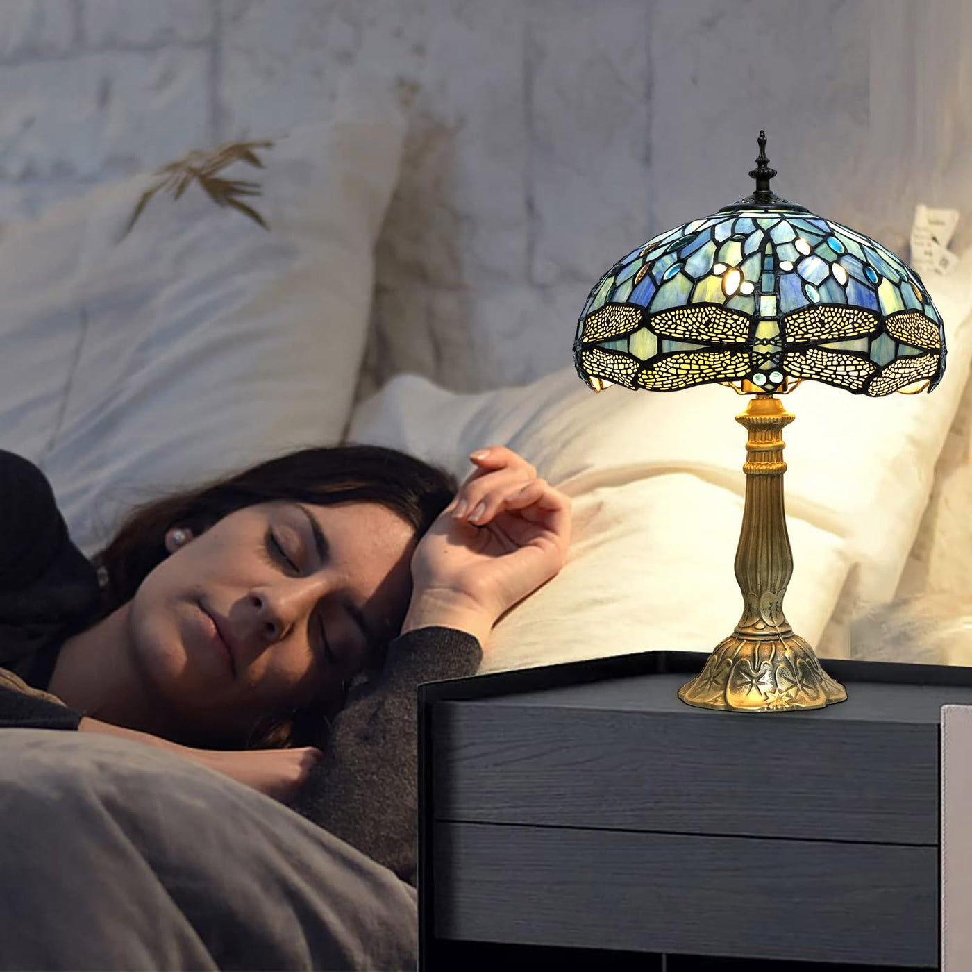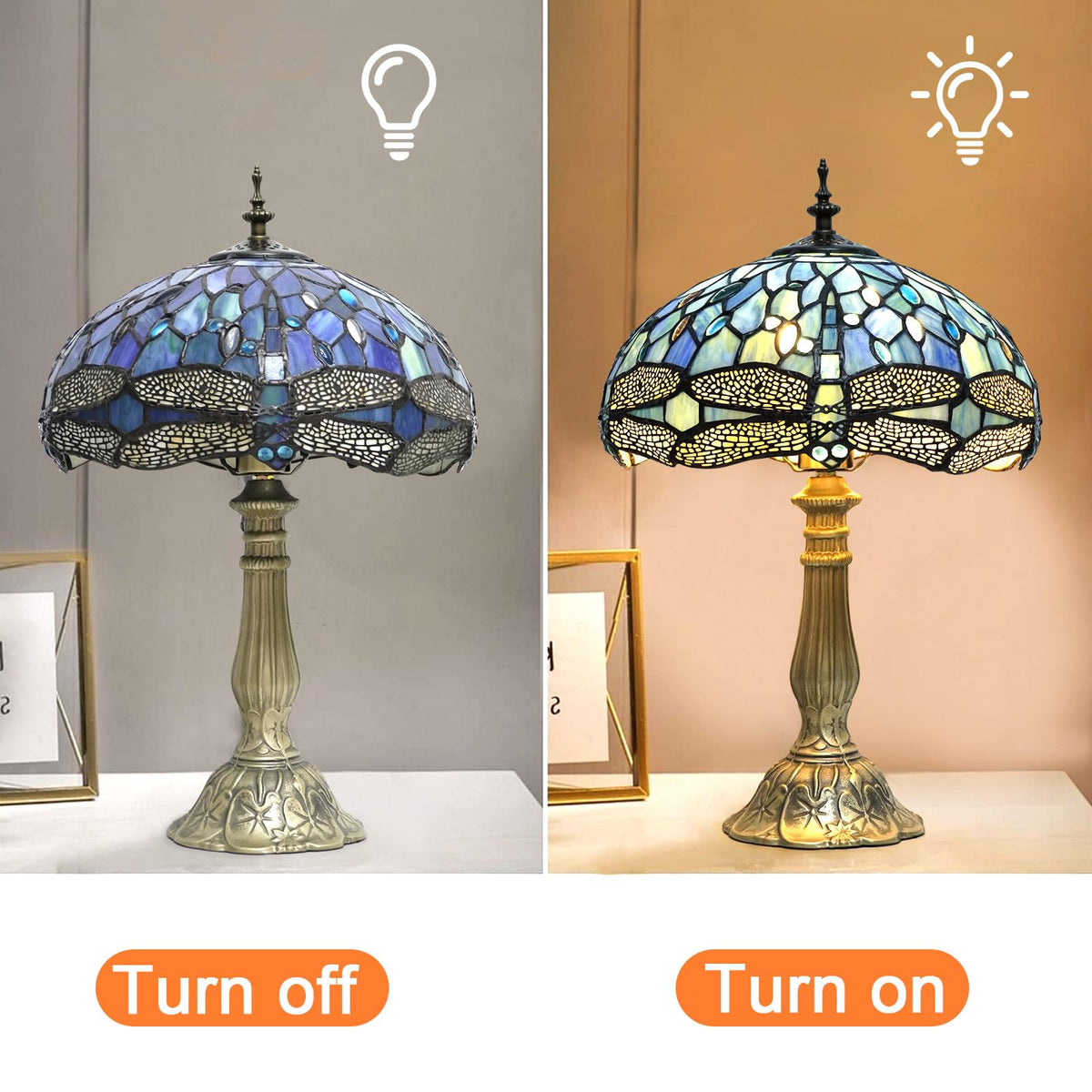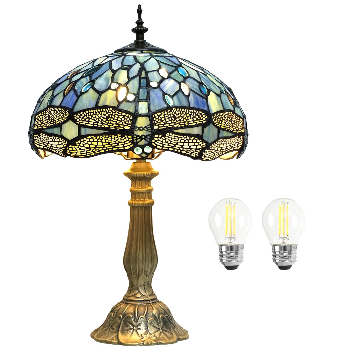 Satisfy Your Taste For Exquisite Style With Our Tiffany Table Lamp. Add A Touch Of Class And Elegance To Any Living Space With The Beautiful Tiffany Style Table Lamp. Handcrafted With Attention To Detail And Designed To Last For Years, This Lamp Is Sure To Be A Conversation Starter In Any Room. Each Lamp Is Carefully Handcrafted With Premium-Grade Stained Glass To Give Your Home That Touch Of Luxury. The Quality Metal Base Is Electroplated Bronze For An Even More Exquisite Look. Our Aluminum Alloy Base Enjoys Good Sturdiness And Outstanding Stability When Placed, Contributing To An Enduring Life-Span Of This Tableside Lamp. The Stunning Dragonfly Pattern And Intricate Use Of Stained Glass Give Off A Warm, Inviting Glow That Can Help Create A Cozy And Comfortable Atmosphere In Any Home. Generously Arriving With Two Energy-Saving Led Light Bulbs To Duly Display Its Charms, This Tiffany Style Lamp Will Attract Glances Of Admiration To Adorn Tables, Shelves Or Bedside Table In Any Room. Perfect Where Light Is Always Welcomed The Intricate Pattern And Rich Colors Of Our Lamps Pair Remarkably Well With Elegant Period Furnishings As Well As With Mid-Century Modern Retro Styles, Making Them Suitable For Any Area Of Your Home, Office Or Man Cabice For Business Colleagues, Customers, Friends, Family. Class Up Any Room With A Vintage Touch Of Our Tiffany Table Lamp.