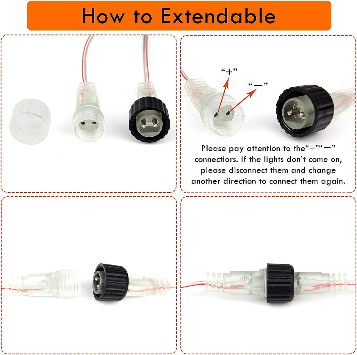 Q: Can I connect multiple sets of lights together?A: Yes, the lights come with end-to-end connectors, allowing you to connect up to five strings together for a more extensive lighting display.