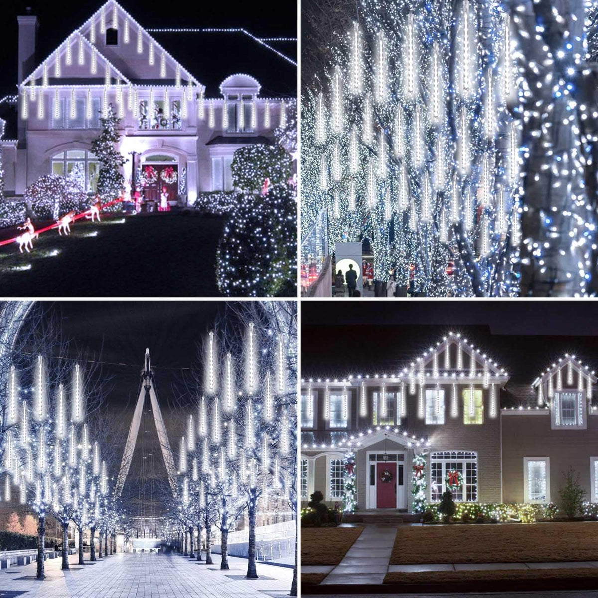 Q: What color are the lights?A: The meteor shower lights emit a cool white color, creating a bright and festive atmosphere for holiday decorations.