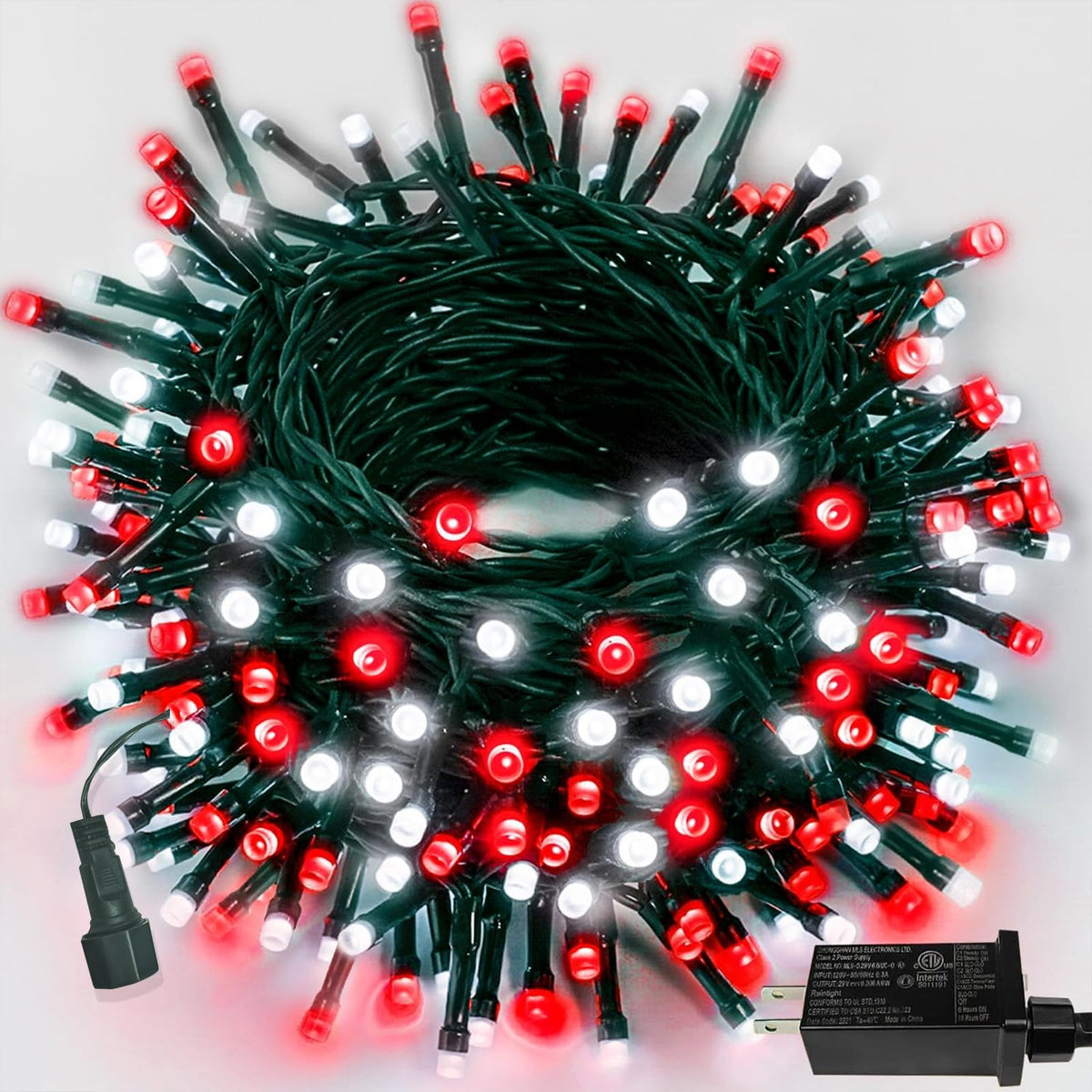 YIQU 200 LED Christmas Lights, Red & White, Timer & Memory Function, 75.8 FT, Waterproof, Extendable, 8 Modes