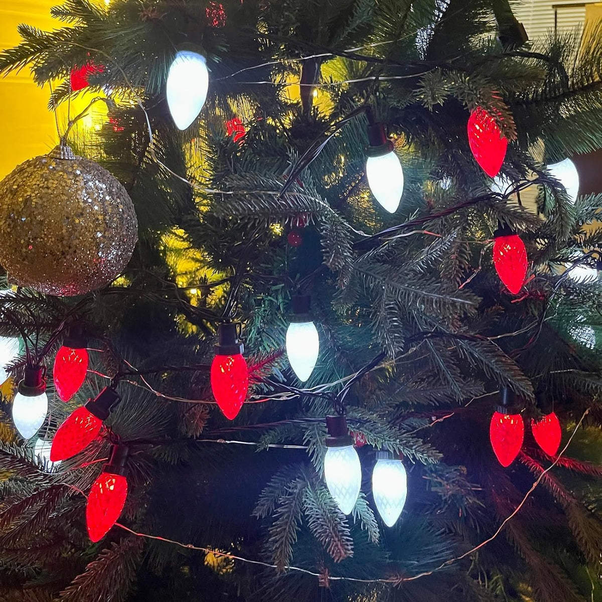 Illuminate your holiday season with the YIQU 2-Pack 66FT C9 Christmas String Lights. Designed for both indoor and outdoor use, these vibrant red and white lights add a festive touch to any setting, making them perfect for Christmas trees, gardens, patios, and party decorations.