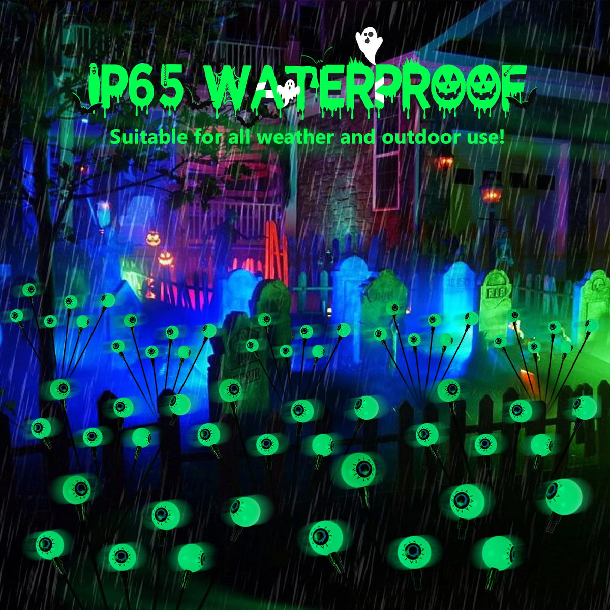 Q: Can the YIQU Solar Eyeball Lights withstand harsh weather conditions?A: Yes, the lights are rated IP65 for waterproofing, meaning they can withstand exposure to rain and harsh weather conditions, making them suitable for outdoor Halloween decorations.