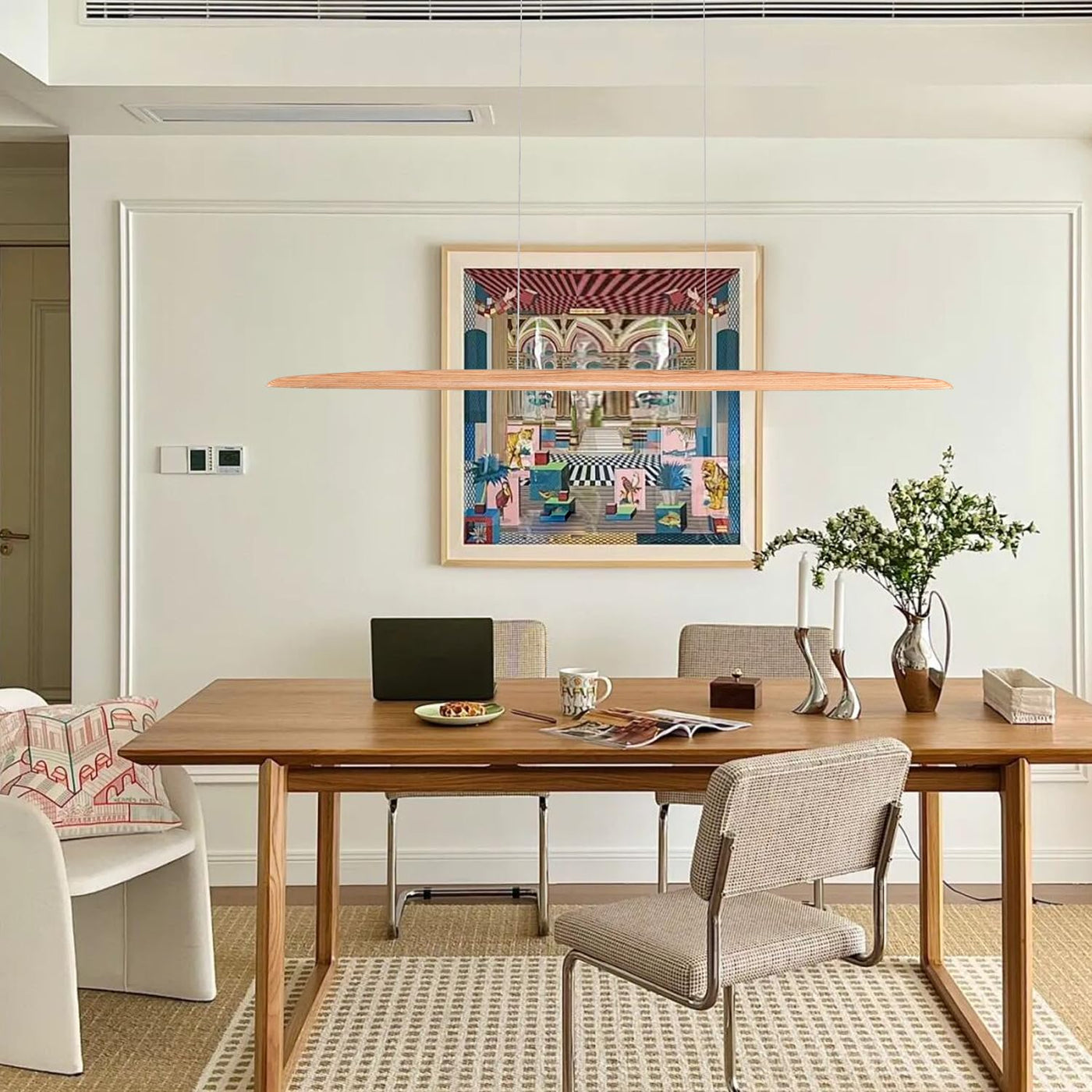 Yisdesign 39'' 24W Wood Led Linear Pendant Light Fixture Led Dining Room Light Dimmable Hanging Light Fixture For Dining Room Ki