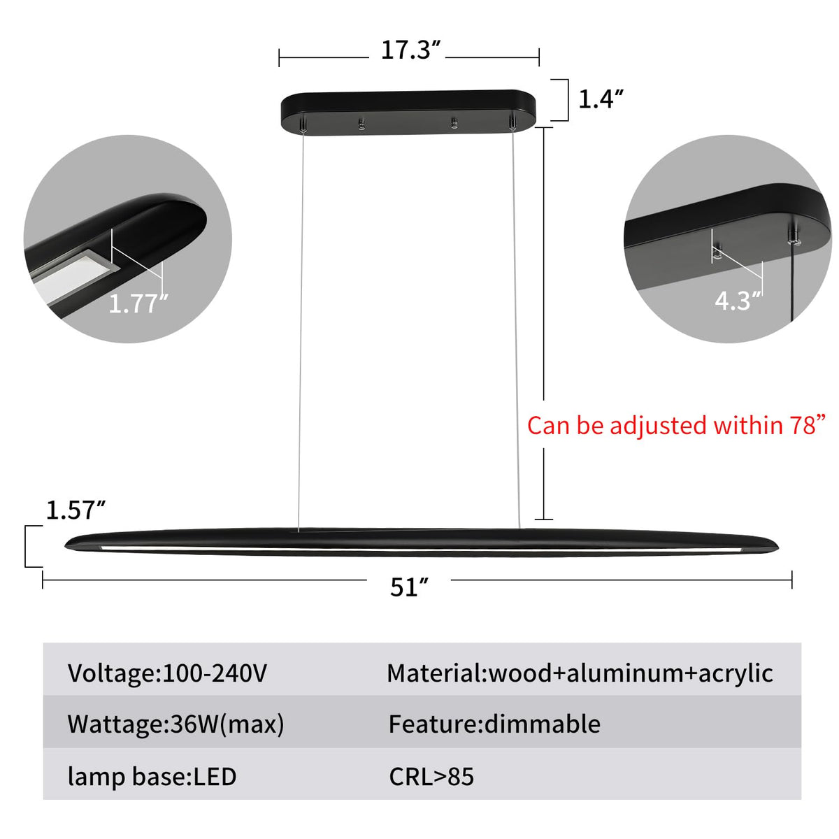 Minimalist Pendant Led Linear Chandelier For Kitchen And Dining Room From Yisdesign Will Perfectly Fit Into Your Interior And, Thanks To Modern And High-Quality Materials, Will Serve For Many Years.Depth Electrical Specifications: Number Of Bulbs: 1 Bulb Included: Yes Bulb Type: Led Socket Type: None (Integrated Led Engine) Total Wattage: 24W Color Temperature: 3200K (Warm White) Color Rendering Index (Cri): 85 Dimmable: Yes Voltage: 110-220V (U.S. Standard Line Voltage) Warm White Leds Create A Friendly And Inviting Atmosphere That'S Perfect For Homes, Restaurants, Offices, And Light Commercial Spaces Dimensions: Lamp Body Height: 1.6'' Max Hanging Height: 78.7'' Depth: 2.6'' Width: 39'' Canopy Dimensions: 12.6 X 4.3 X 1.4 Inches(L*W*H)