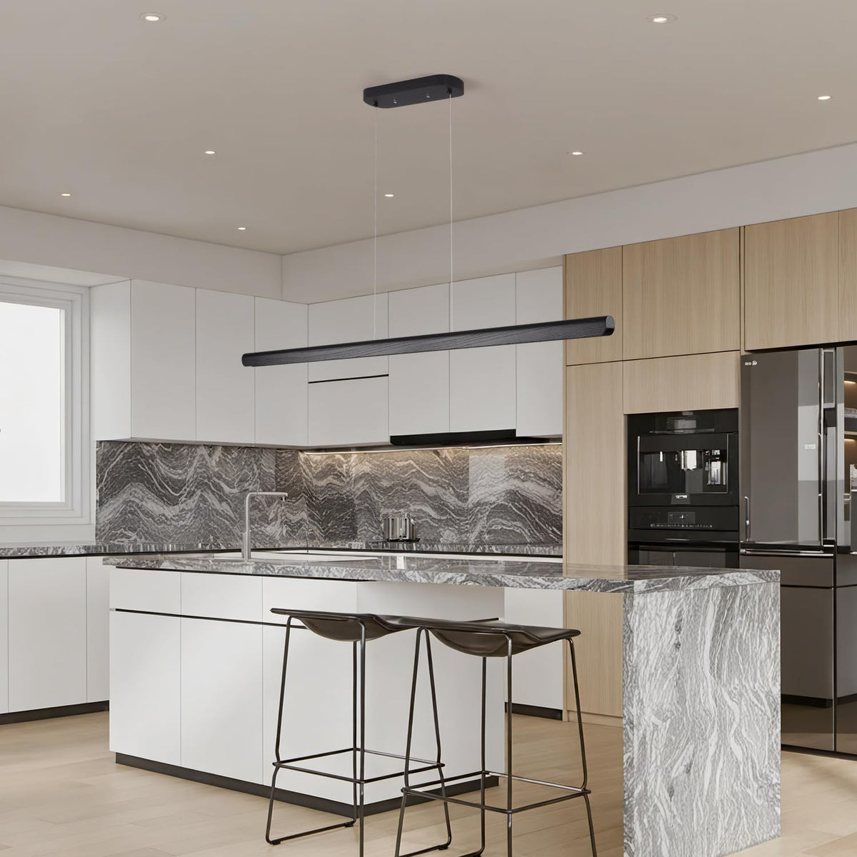 Transform Your Space With This Sophisticated 47-Inch Linear Pendant Light That Masterfully Combines Modern Design With Natural Elements. The Sleek Fixture Features enhanced Wood Aluminum And Acrylic Construction With A Striking Black Finish That Adds Contemporary Elegance To Any Room. With Its Generous Dimensions (47 Length X 4.3 Width) And Adjustable Hanging Height Up To 79 Inches This Chandelier Makes A Bold Statement While Maintaining Versatile Installation Options. The Integrated 36W Led Light Source Delivers Exceptional Illumination With Superior Color Accuracy (Cri>90) While Full Dimming Capability Lets You Create The Perfect Ambiance For Any Occasion. Operating On Standard 100-240V This Pendant Light Is Ideal For Kitchen Islands Dining Areas Or Office Spaces. The Minimalist Design Includes A Sleek 17.3-Inch Mounting Canopy And 1.61-Inch Thick Light Bar That Ensures Stable Installation While Maintaining Clean Lines. The FixtureS enhanced Build Quality And Thoughtful Engineering Combine To Create A Stunning Focal Point That Enhances Both Form And Function In Modern Interiors.