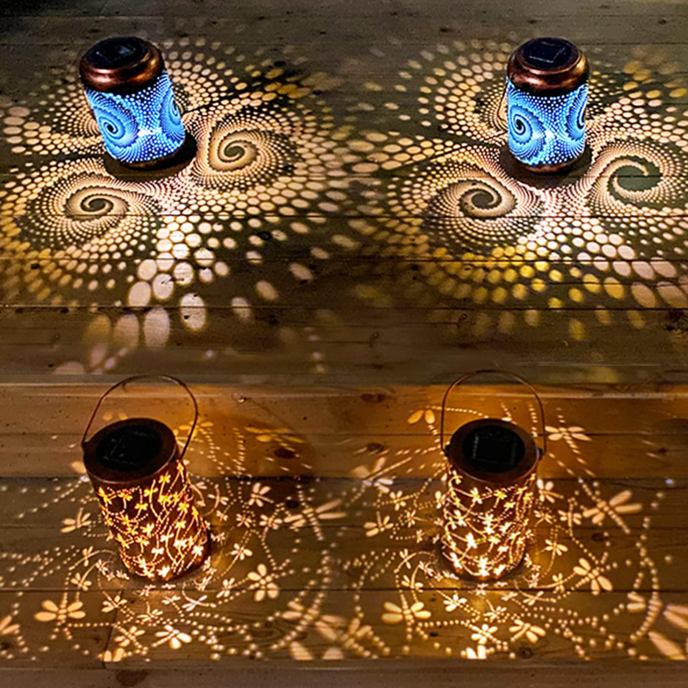 Solar Led Lantern: Boho Solar Lantern And Dragonfly Lantern Are Made Of Copper, Vintage Decoration Style, Mandala Carved Design, And The Size Is 3.9 ''X3.9'' X7.1 '', Decorate Your Garden, Yard, Pathway, Table. Let Your Garden More Sparkling!