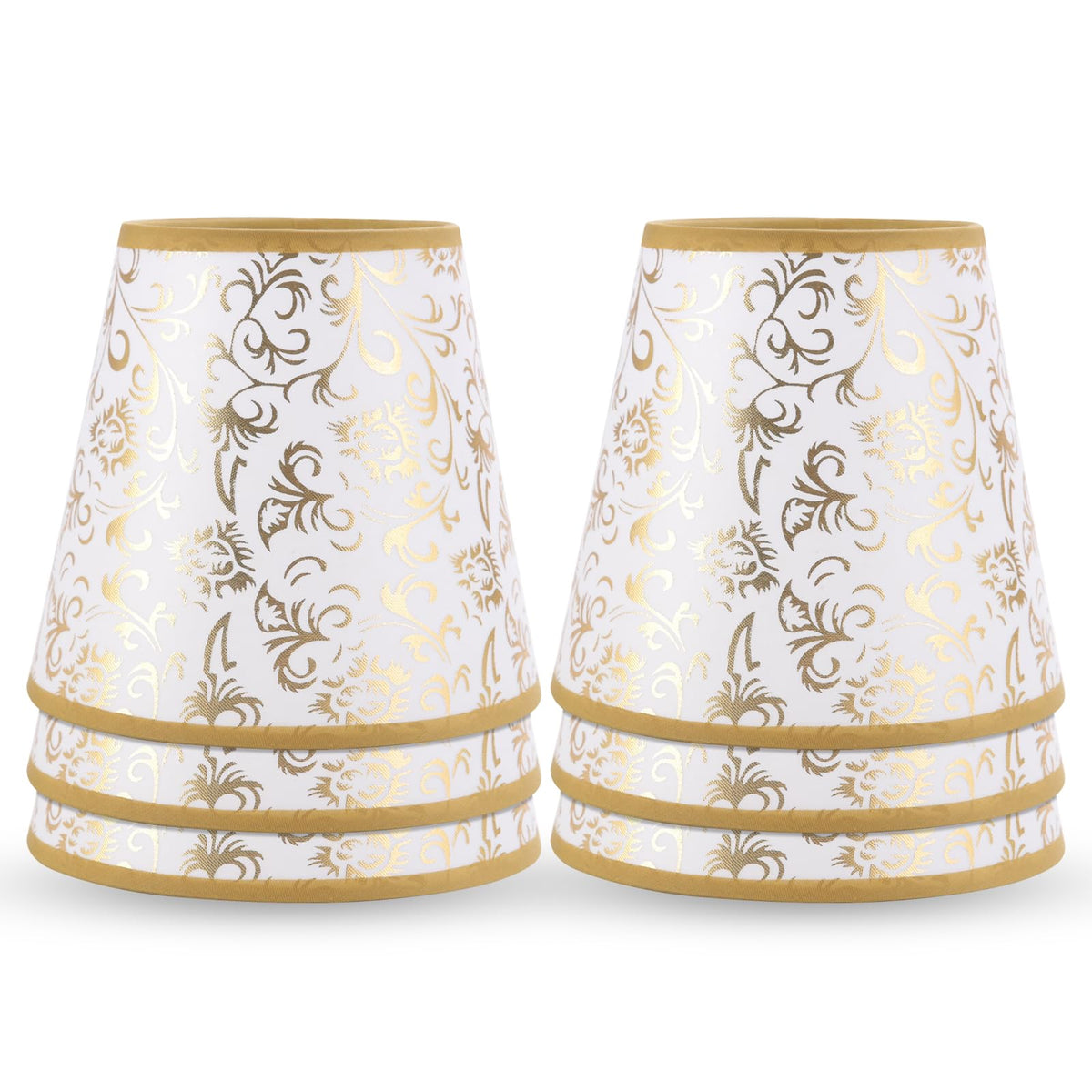 Q: How many lamp shades are included in the set?A: The product comes as a set of six lamp shades.