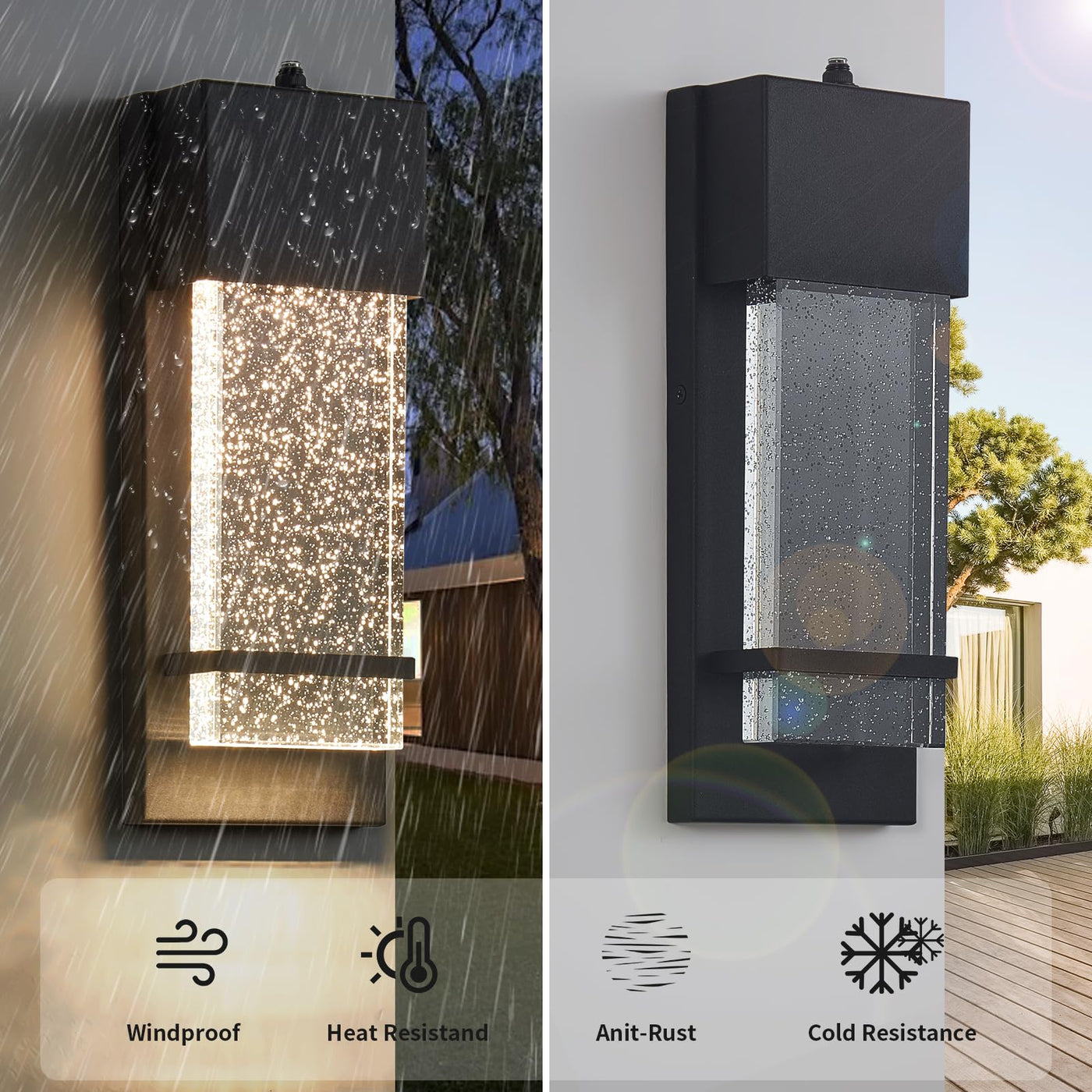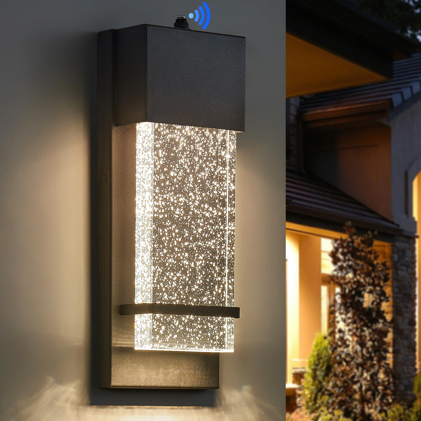 Yisuro Dusk To Dawn Black Wall Sconce With Crystal Bubble Led, Outdoor Lighting Fixture