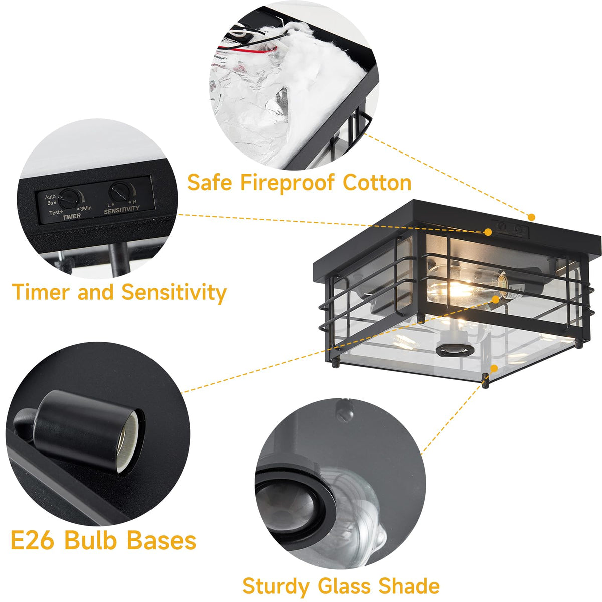 Yisuro Outdoor Ceiling Light With Motion Sensor Flush Mount Farm House Porch Light Ceiling Mount Adjustable 3 Modes Squares For
