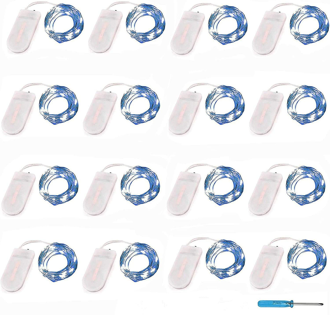 Yjfwal 16 Pack Blue Fairy Lights(Batteries Included) 10.5Ft 30 Leds Wire Battery Powered Fairy Rope Light For Diy Wedding Party Mason Jars Christmas Decorations (Blue Fairy Lights)