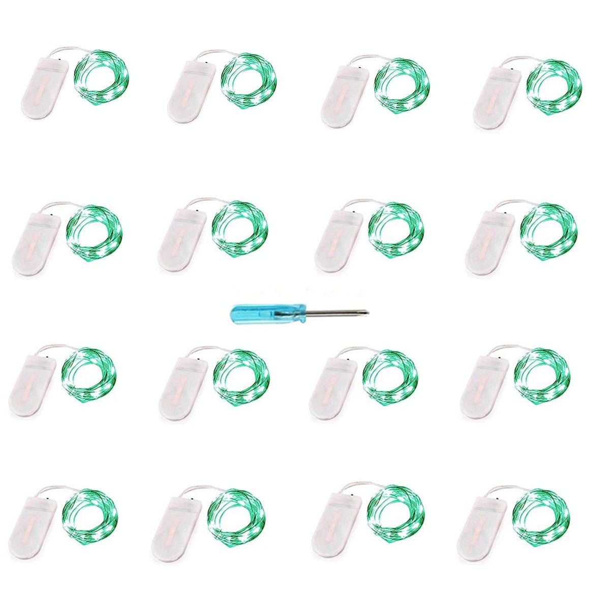 Yjfwal 16 Pack Green Fairy String Lights Battery Operated(Batteries Included) 10.2Ft 30 Led Mini Firefly Starry Lights Silvery Copper Wire For Diy Mason Jars Christmas Wedding Party Decoration