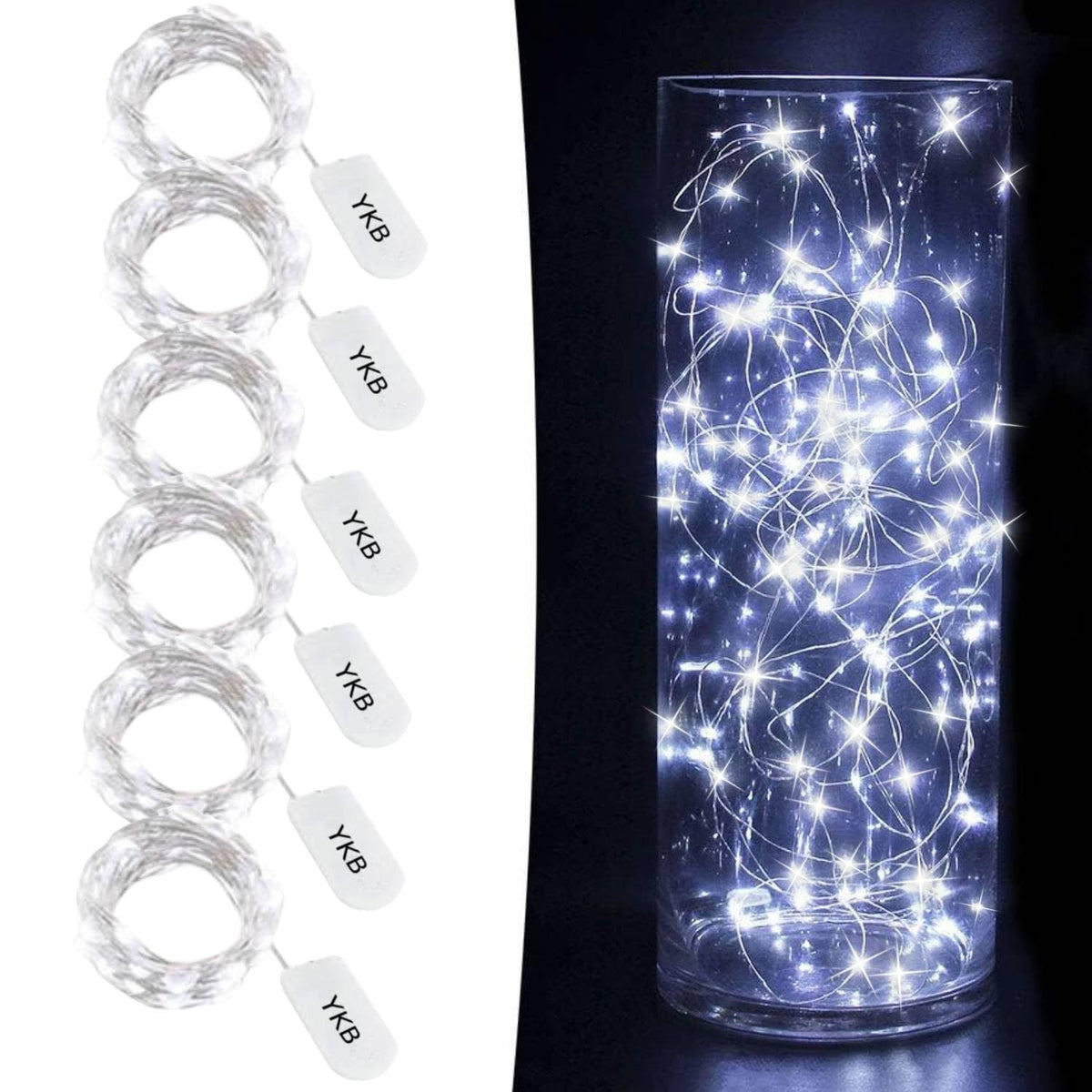 Pack of 6pcs strands of fairy lights led starry string lightsSEEOU provides the BEST micro led fairy lights string, no need to look around furtherSAY farewell to your traditional fairy string lights for decorating.Widely Use with This LED String Fairy Lights It got so many possibilities for decorating, for wedding, party, holiday, Halloween, Christmas etc... The lights create ambience of relaxing, welcoming, attracting, joy, happiness, love, and romance. With extra thin and flexible copper wire, you can put it in vases or mason jars, or you can easily bend and shape it around wine bottles, plants, furniture, signs, and almost everything else. High Quality Flexible Silver Coated Copper Wire You can easily curl the fairy string lights for convenient storage after finishing using. Bright Premium Quality Micro Fairy Lights Cool White, 20pcs of them, with high brightness, 360 degrees viewing angle, it illuminates in every direction. Long Lasting and Not Over Heat Battery continuous lifespan is over 24hours, longer if using with breaks. Low energy consumption, good heat dissipation, cool and safe to touch without risk of burns. Easy to Operate On/Off switch on battery box, turn it on or off easily, you can also take the fairy lights anywhere you want. Waterproof Except Battery Box The led fairy lights string is waterproof, suitable for both indoor and outdoor lighting decorations. NOTE: The battery box is NOT waterproof.There is a free mini screw driver for replacing batteries.Package Includes: 1. 6 x led fariy lights string 2. 1 x screw driver Please enjoy shopping at SEEOU