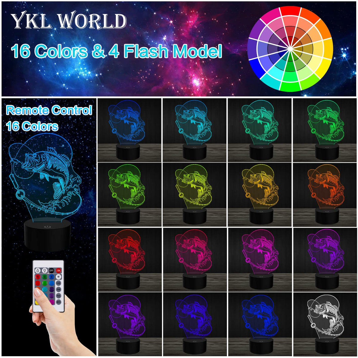 Yklworld 3D Fishing Lamp Illusion Led Night Light Touch Fish Desk Table Lamps 16 Color Change Usb Charging/Battery Powered Home