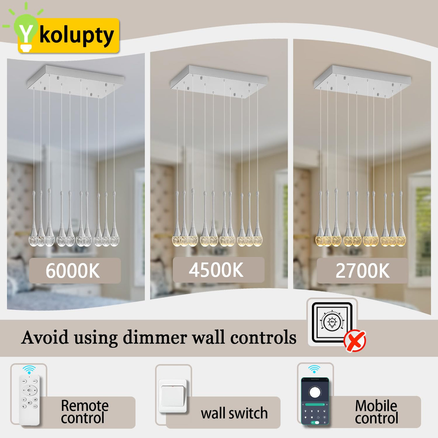 Ykolupty Rectangular Chandeliers For Living Room Silver Dining Room Lights Fixture Over Table Raindrop Pendant Lights Kitchen Island Crystal Chandelier For Staircase Hallway Foyer Entryway